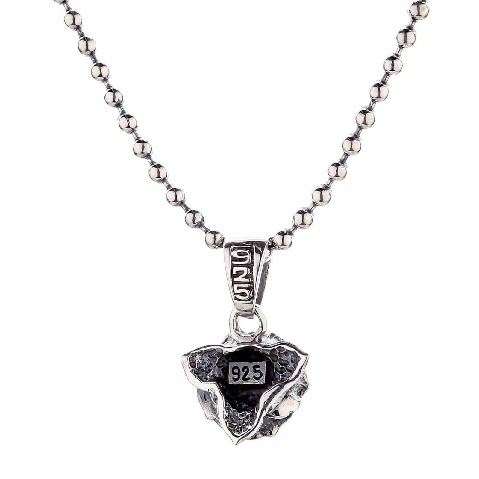 The rose has always been a powerful icon of eternal love, and this design explores its full duality—representing not just delicate beauty, but the resilient strength found in gothic romance. At its center, a deep red garnet gemstone burns like a fiery heart, symbolizing unwavering commitment and profound passion. With its strong unisex appeal, this versatile floral pendant is perfect for adding a touch of dark elegance to any outfit, making it a standout addition to any Gothic Jewelry collection.