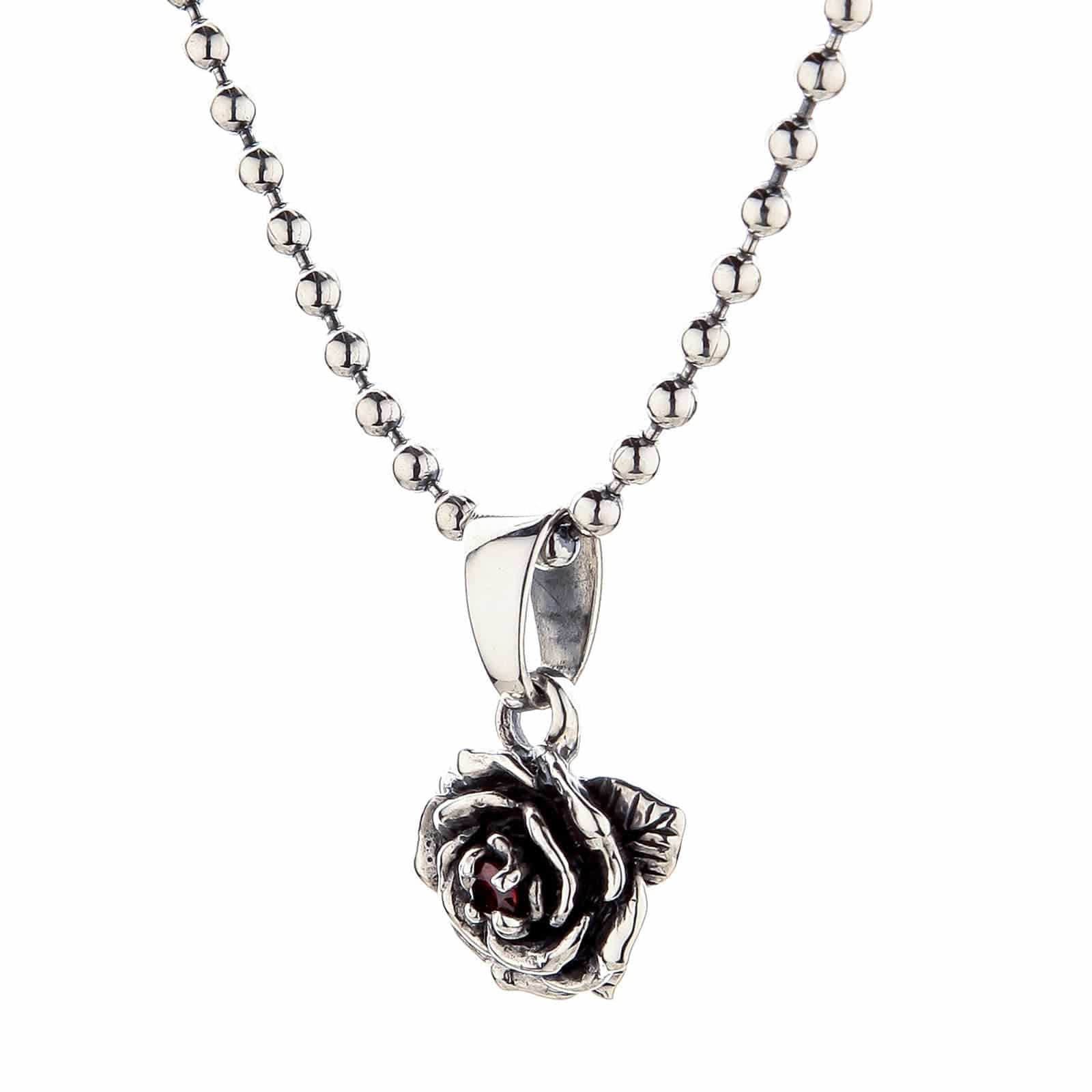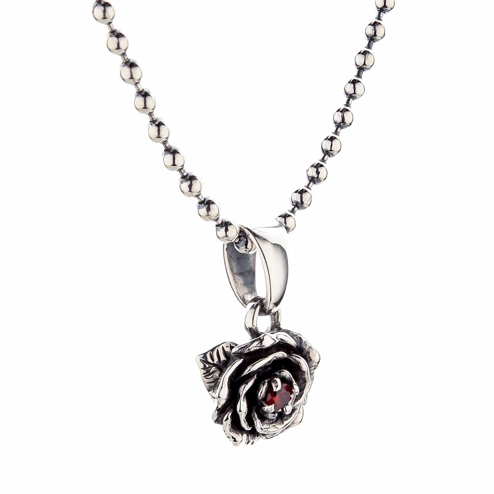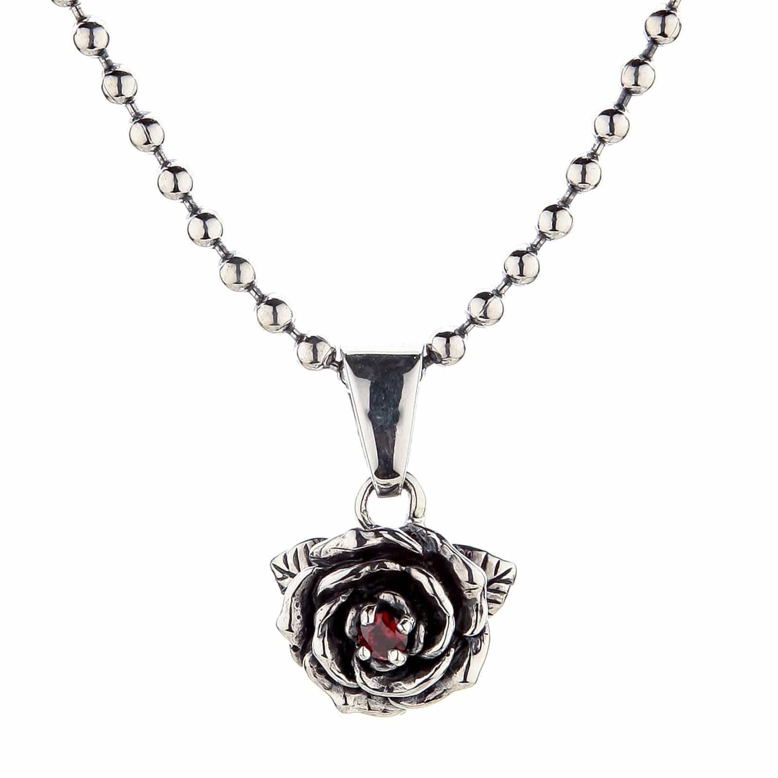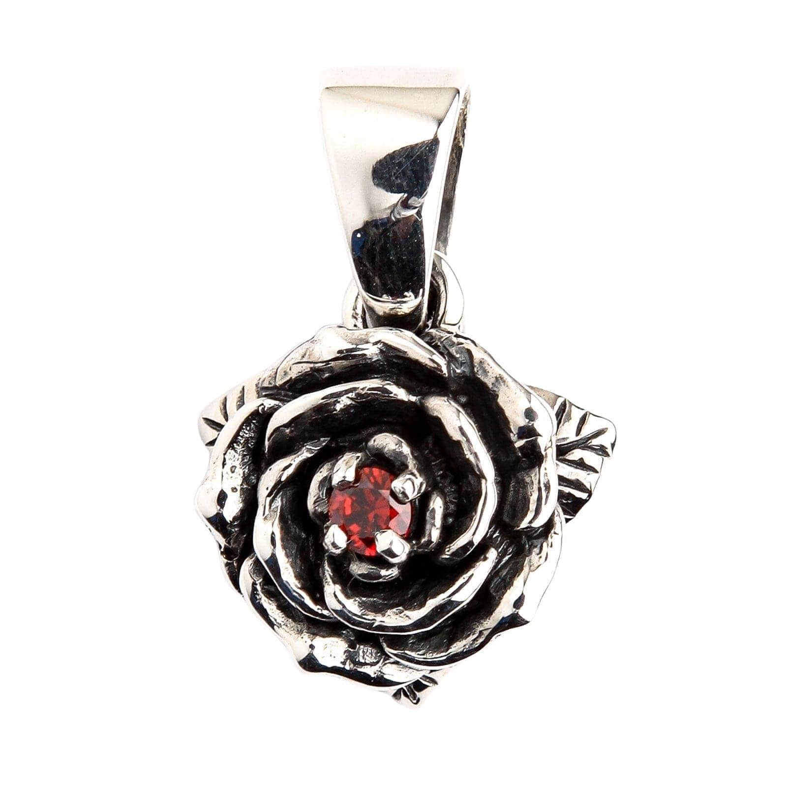 Embrace the timeless symbol of romance with our exquisite rose pendant, a piece that masterfully captures both love and strength. Forged in solid sterling silver, this isn't just another piece of floral jewelry; it's a bold testament to enduring passion, with a fiery red garnet gemstone smoldering at its heart. It’s a wearable work of art that tells a story of deep affection and gothic elegance.