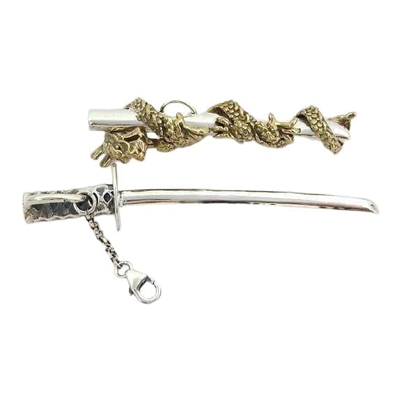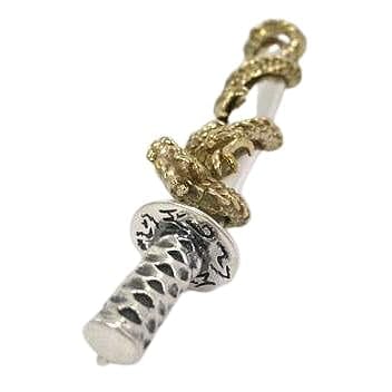 Samurai Dragon Sword Brass Sterling Silver Men's Pendant