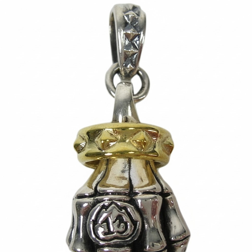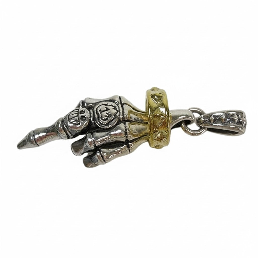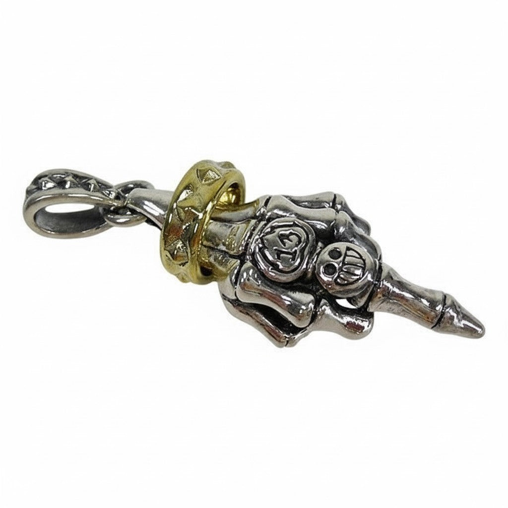 Skeleton Hand Pendant – Sterling Silver Gothic Biker Jewelry with Gold-Tone Accent