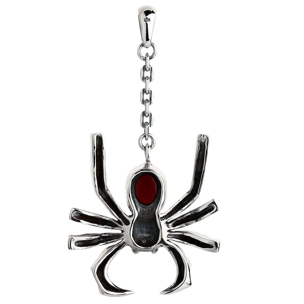 Dangling Sterling Silver Gothic Spider Pendant with Garnet