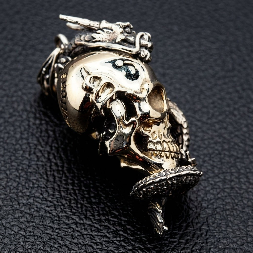 - Two-tone gothic statement: a rich brass skull contrasted with bright sterling silver for an eye-catching finish.