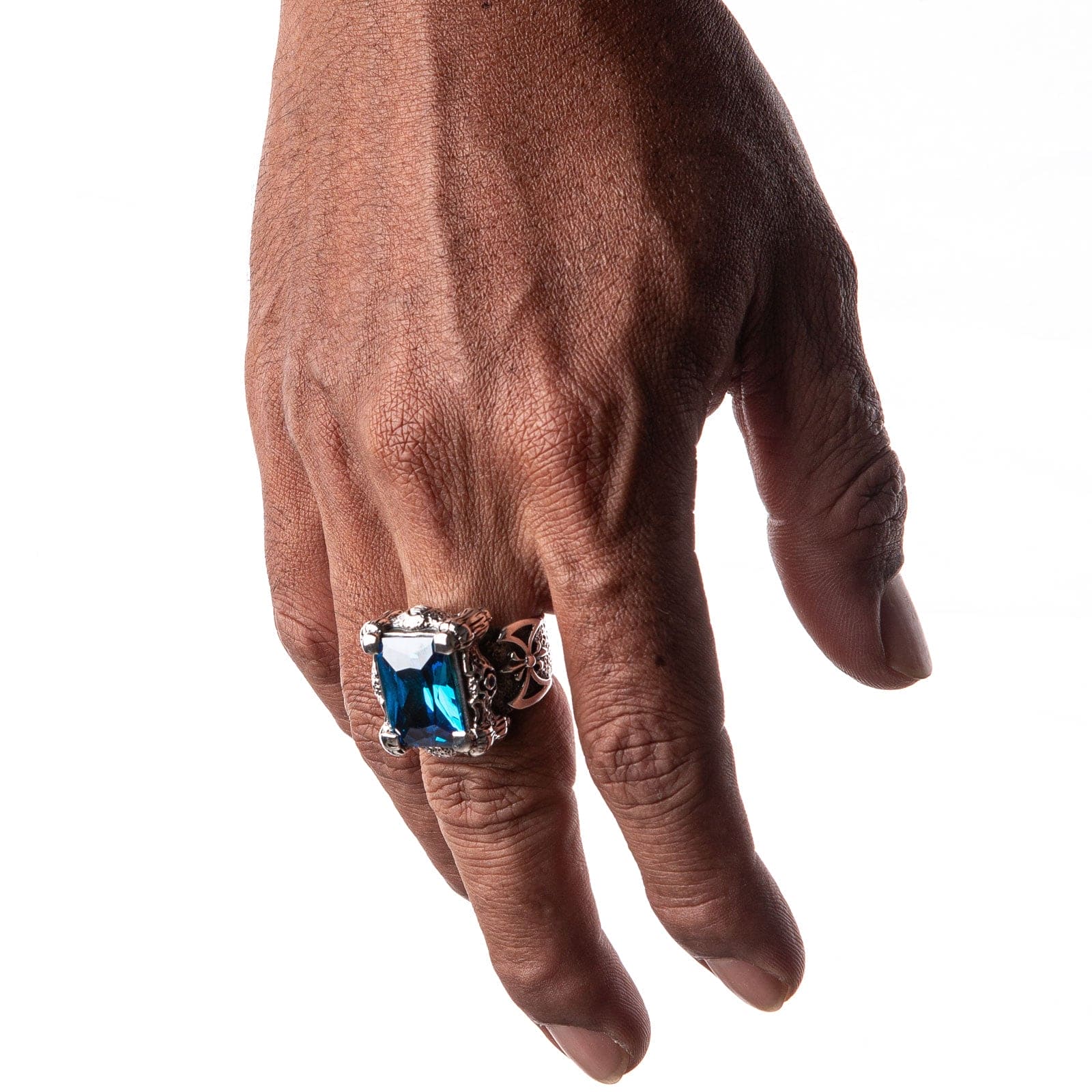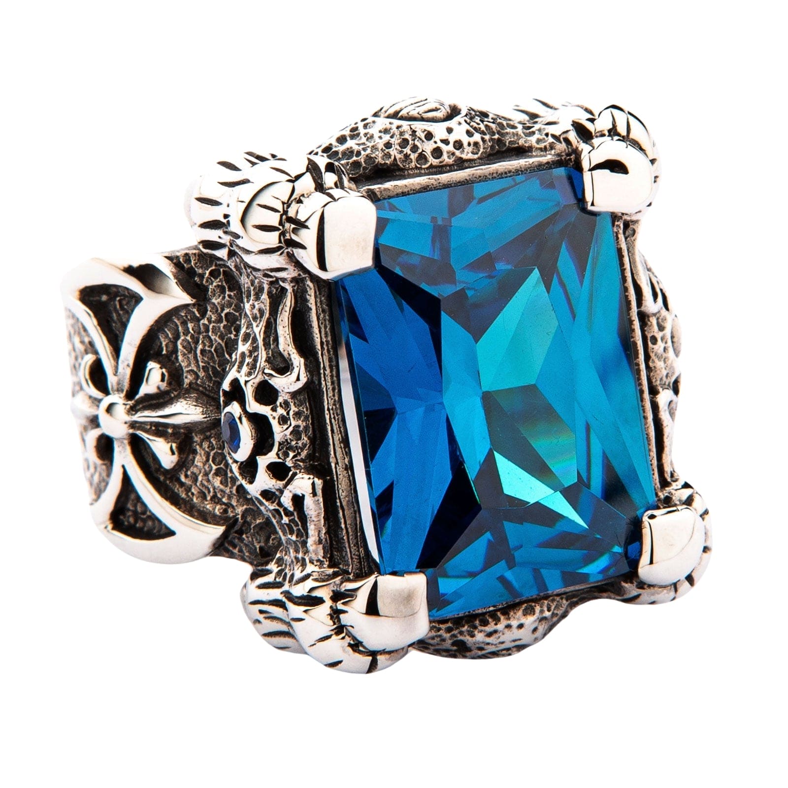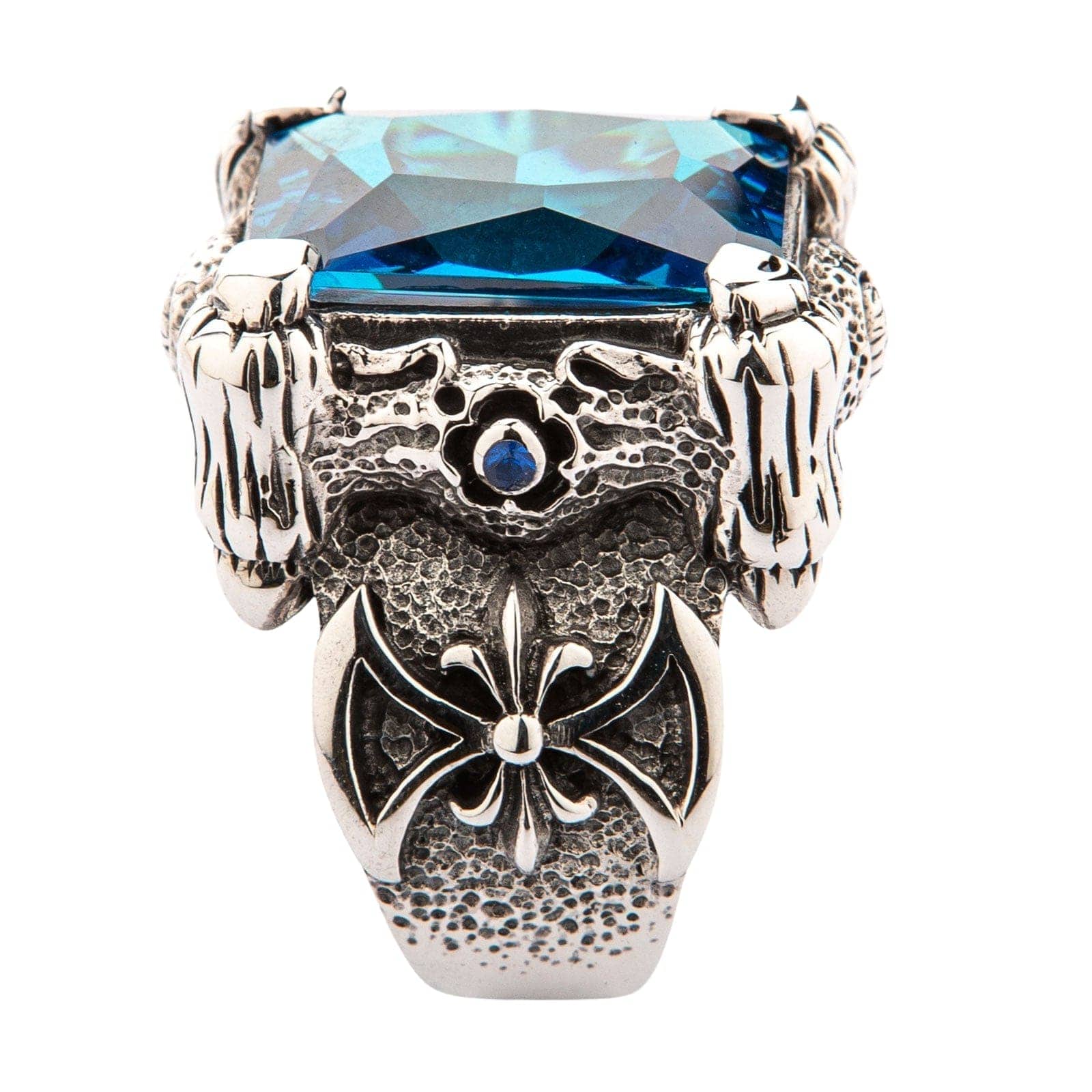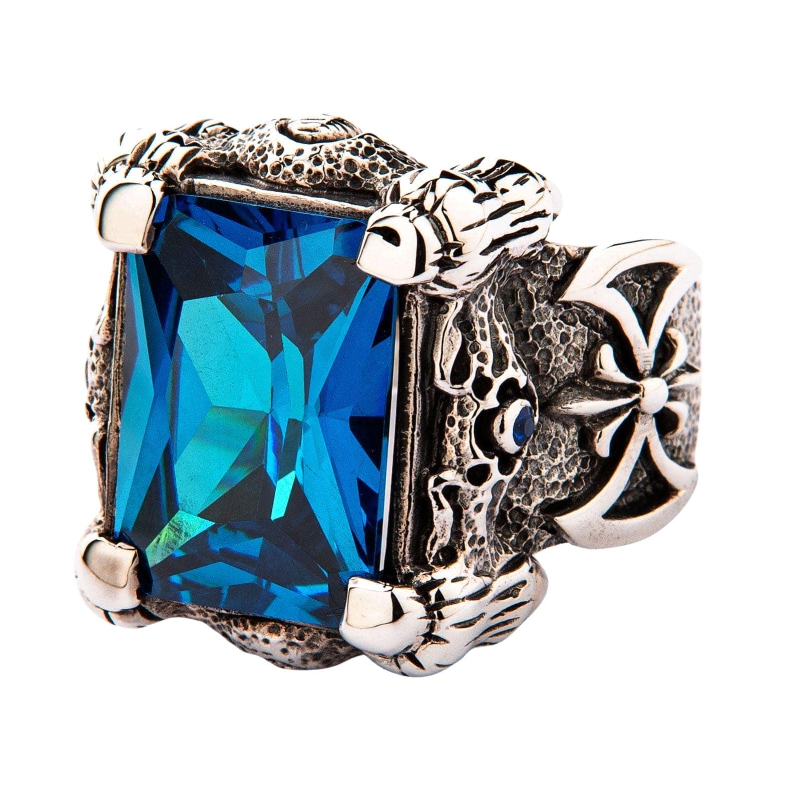 Dragon Claw Ring – 925 Sterling Silver Blue Topaz Men's Gothic Ring