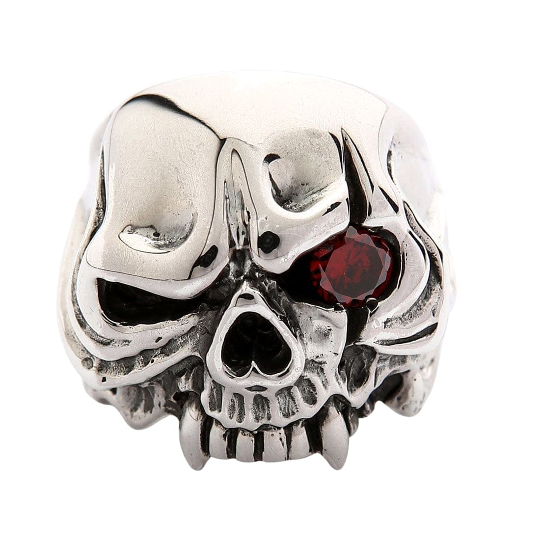 Vampire Skull Ring with Red Gemstone Eye
