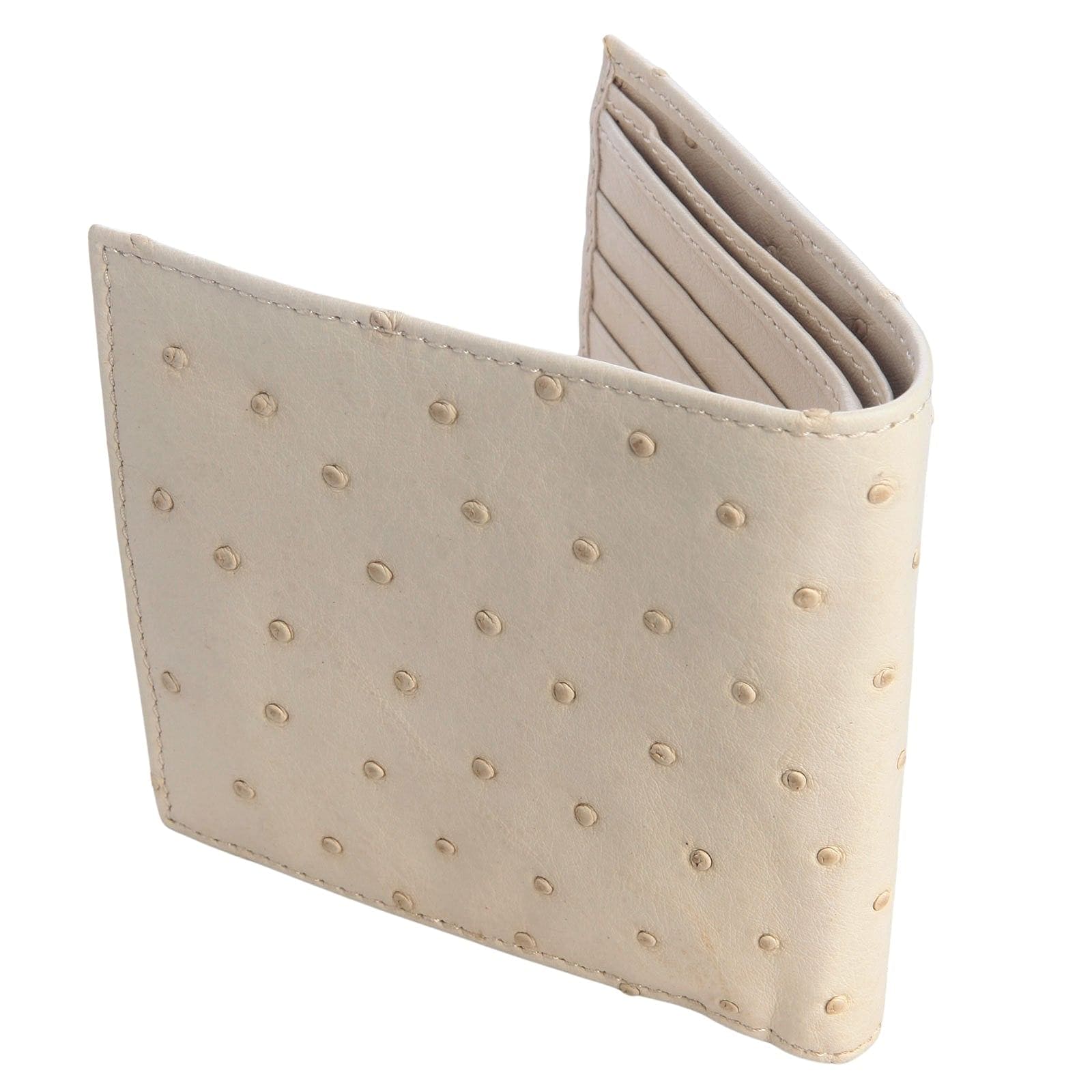 Q: What is the "bumpy texture" on this men's ostrich wallet? A: The unique bumps are the quill follicles, or the "pores" where the ostrich's large feathers grew. This distinctive, natural "quill bump" pattern is the signature of authentic, high-quality ostrich hide.