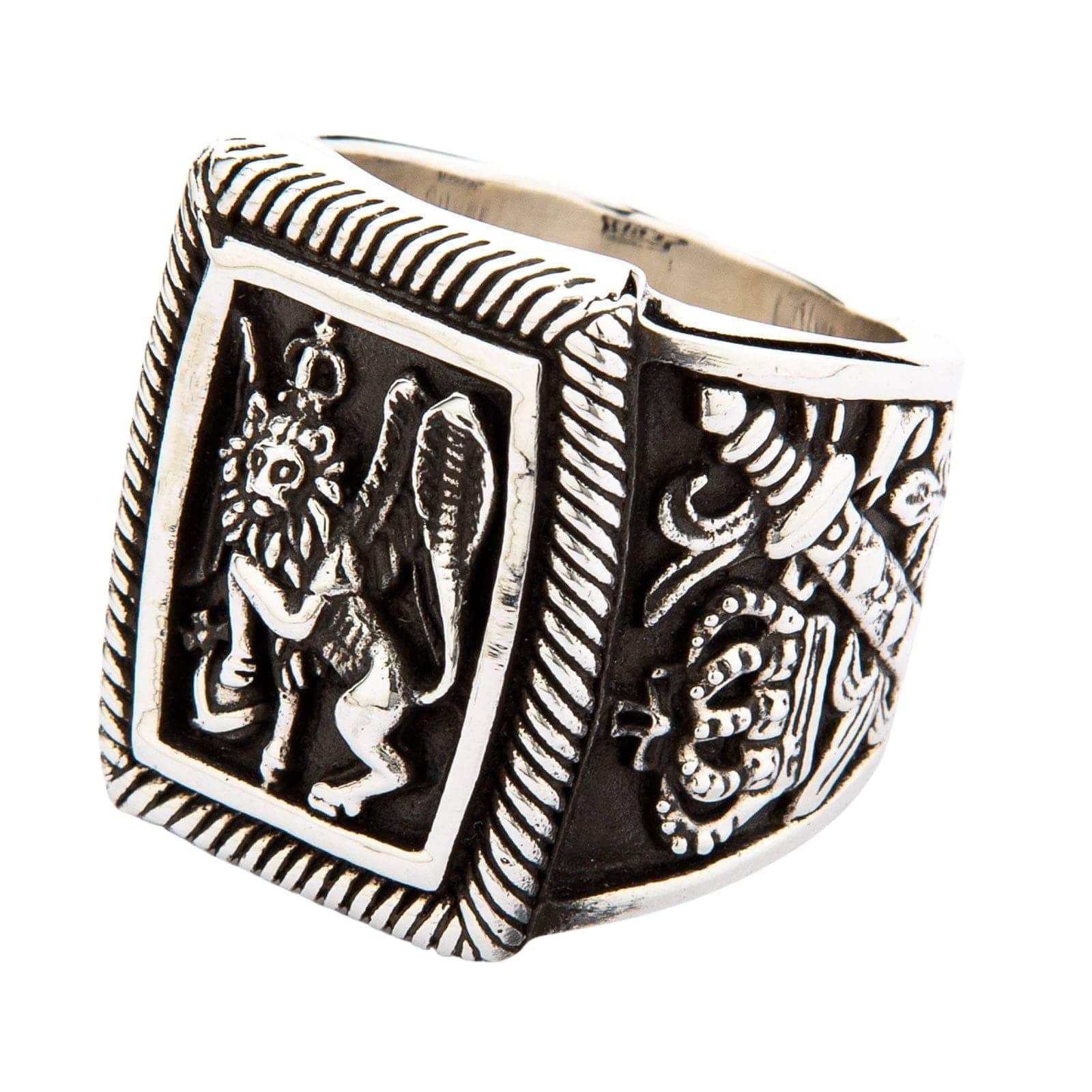 Wear a symbol of ancient power, nobility, and courage with this magnificent winged lion ring. Forged from a colossal 30-gram block of solid .925 sterling silver, this is more than just a ring; it's a piece of classic heraldry brought to life. It’s a powerful tribute to the legendary Lion of St. Mark, designed for the man who embodies wisdom, strength, and majesty.