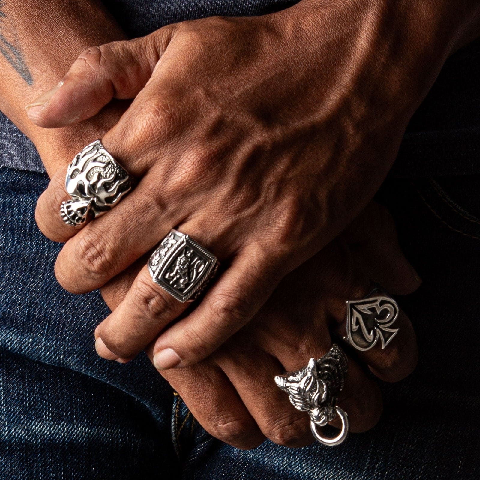 Q: How heavy is this sterling silver lion ring? A: This is an exceptionally heavy sterling silver lion ring, weighing approximately 30 grams. It is specifically designed to be a massive statement piece for those who appreciate the feel of colossal, powerful jewelry that signifies both quality and strength.