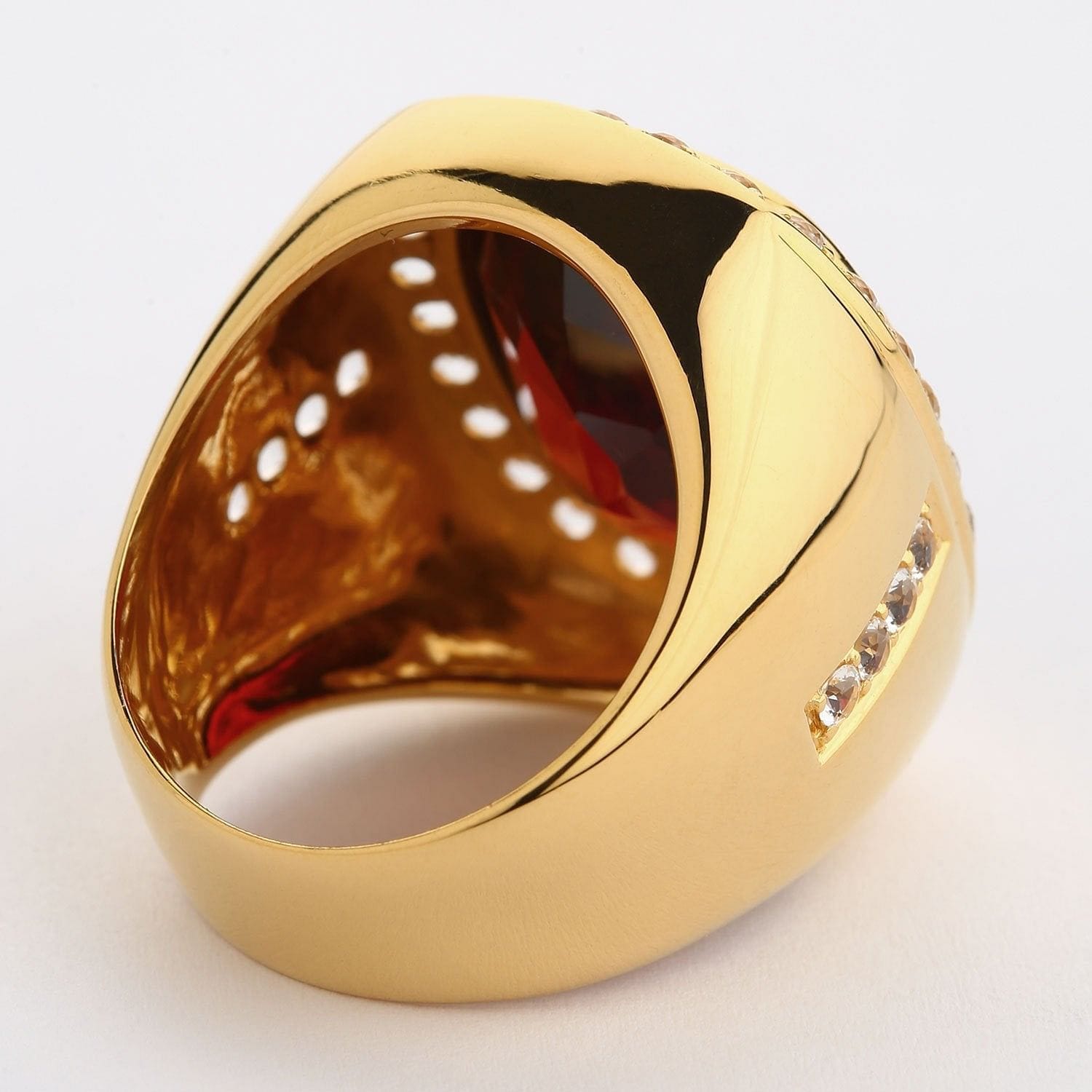 Own the room with this magnificent Men's Gold Garnet Ring, a piece designed for the man who appreciates luxury and a commanding presence. This is not just jewelry; it's a bold statement ring featuring a colossal natural garnet. Crafted with an opulent yellow gold finish, it exudes a sense of power, passion, and undeniable prestige from the moment you wear it.