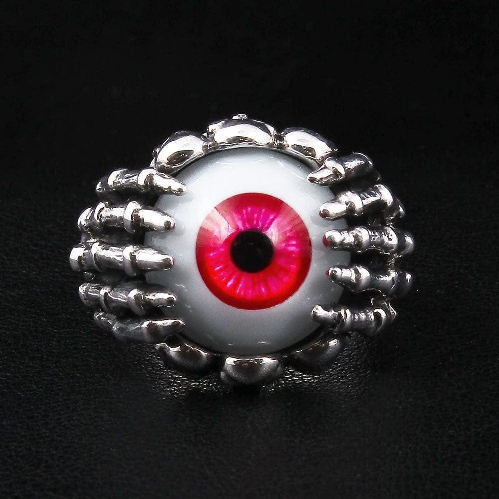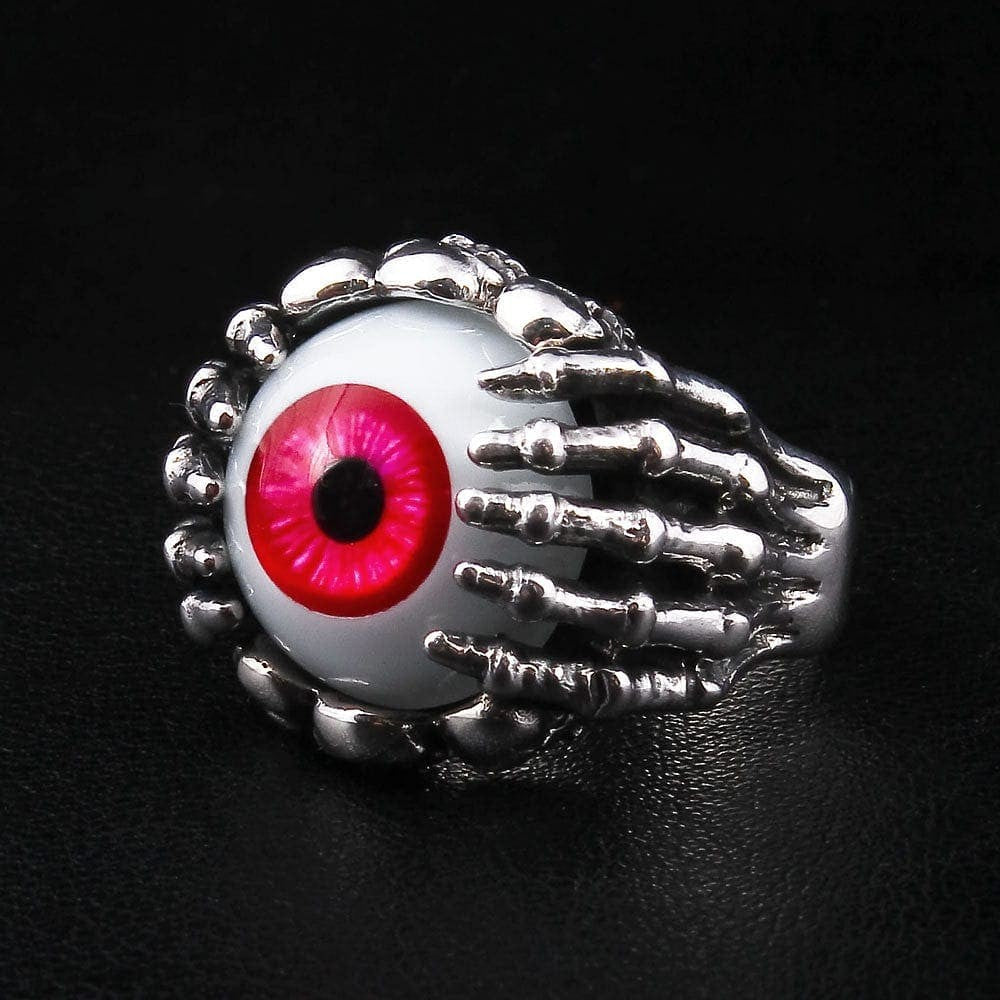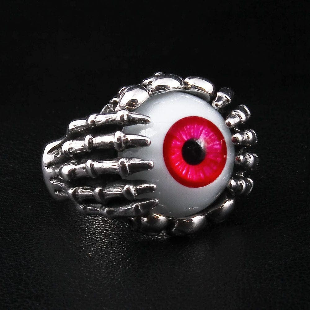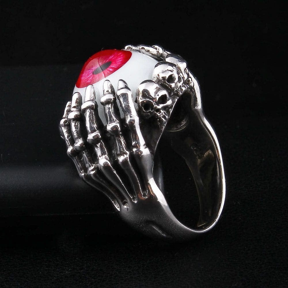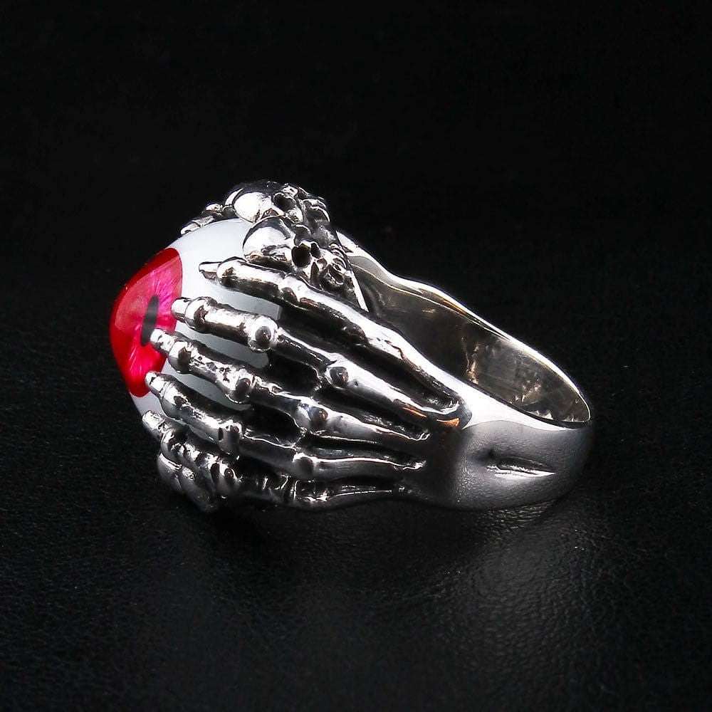 Anel de Garras de Esqueleto em Prata Esterlina 925 com Olho Maligno Vermelho – Peça de Declaração Gótica Artesanal