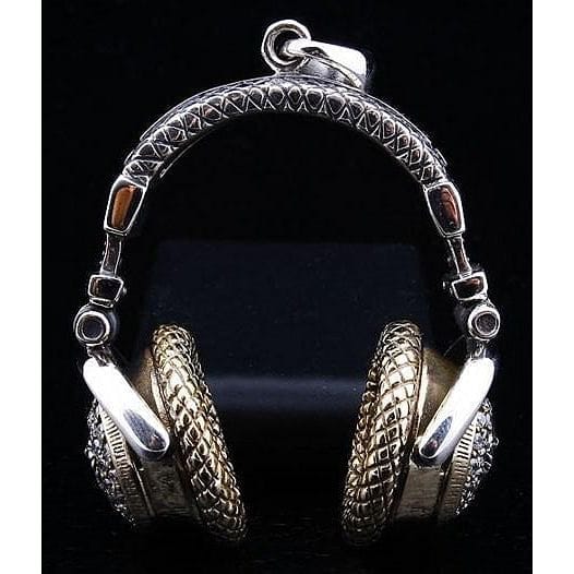 O trabalho artesanal estende-se ao design do pendente em ouro e prata, com um rico banho dourado nas almofadas texturizadas dos auscultadores, em belo contraste com a prata 925 polida. É a peça definitiva de joalharia Hip Hop e o presente perfeito para um DJ.
