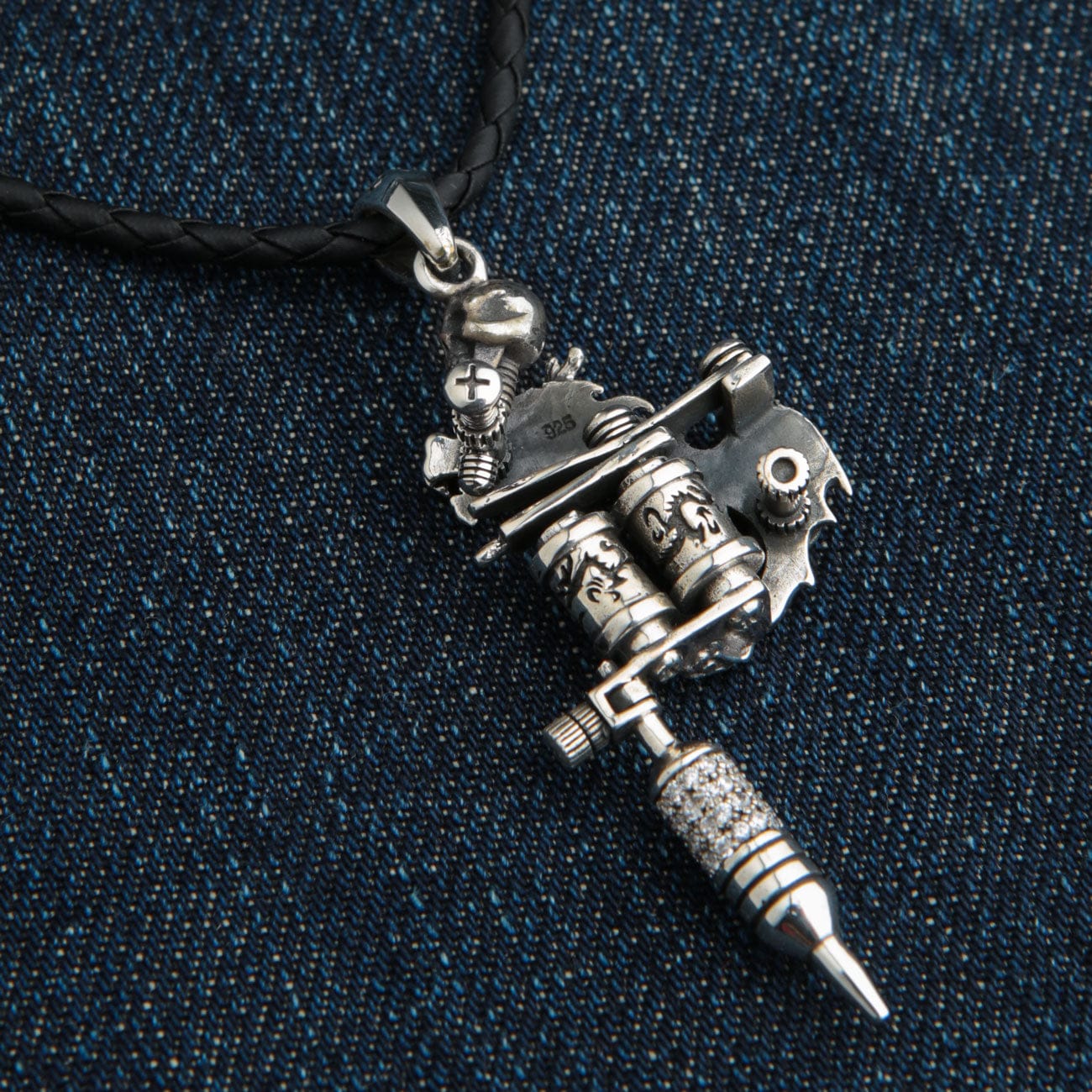 Com um peso substancial de 22 gramas, este pendente de tatuador tem uma presença robusta que reflete a sua construção em prata maciça. Os nossos artesãos utilizam uma combinação impressionante de acabamentos polidos e zonas escuras oxidadas para destacar cada detalhe—desde os bigodes do dragão até às pequenas bobinas da máquina—com uma profundidade incrível. É uma verdadeira peça de destaque, garante de conversa e a homenagem suprema ao poder da arte corporal.