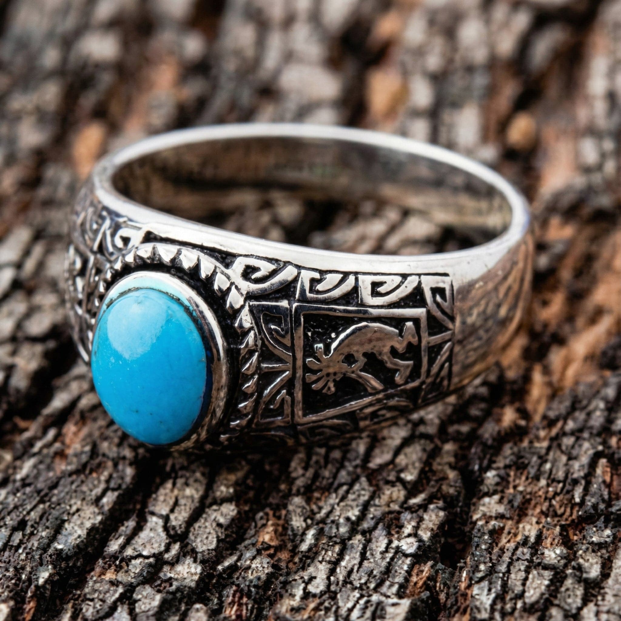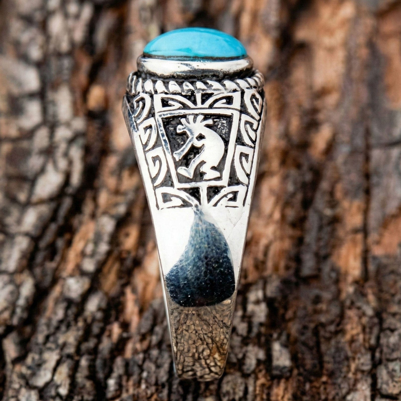 Anel de Prata Esterlina Kokopelli Turquesa Étnico