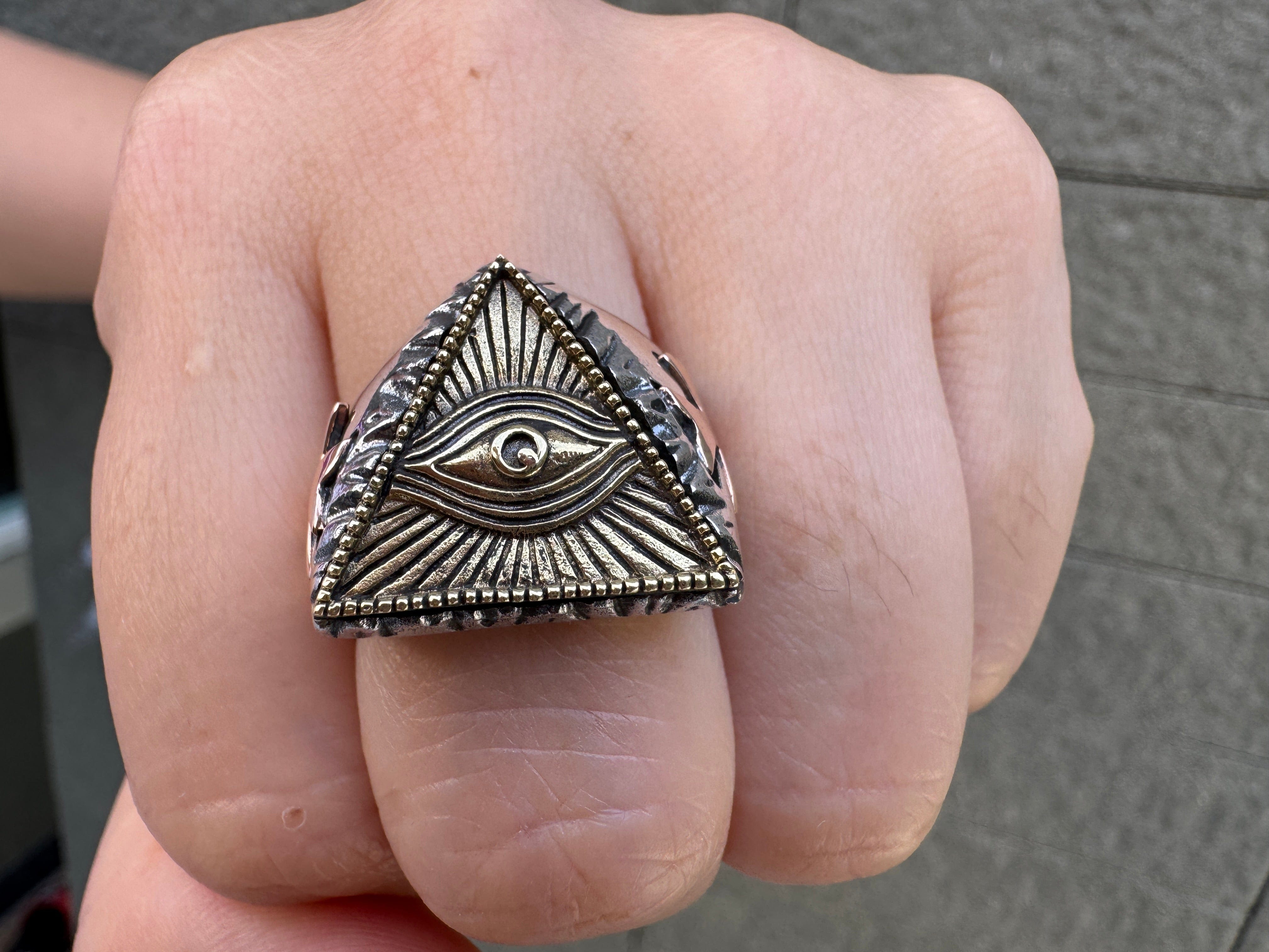 Anel de Prata Esterlina com Olho da Providência em Latão