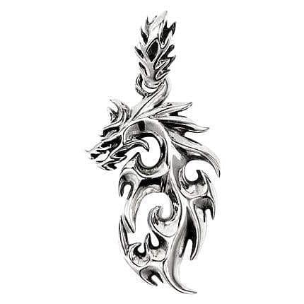 4. O design é um dragão ou um lobo? A beleza deste pendente animal abstrato é que está aberto à interpretação! O seu design tribal em chama evoca intencionalmente qualidades tanto de um poderoso dragão como de um lobo espiritual, permitindo-lhe conectar-se com o simbolismo que mais ressoa consigo.