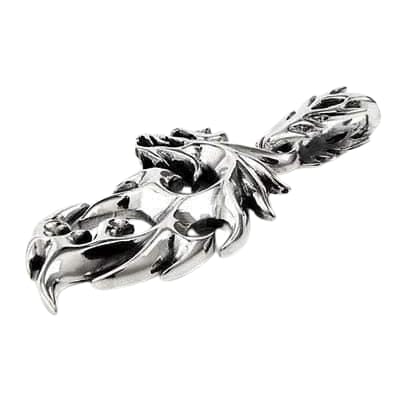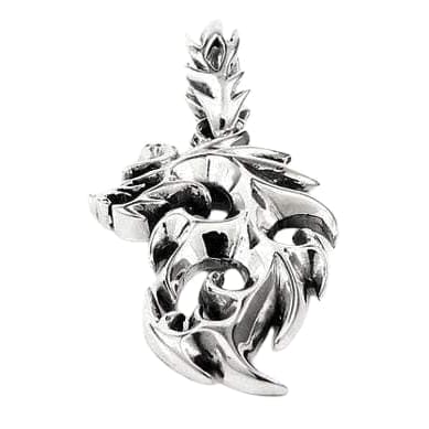 Liberta o poder indomável de duas bestas lendárias com este fascinante pendente lobo-dragão flamejante. Será um dragão a cuspir fogo ou um lobo espiritual nascido das chamas? Este design abstrato e magistral deixa a resposta ao portador, incorporando a energia primal e bruta de ambas as criaturas. Uma peça poderosa de arte tribal, fundida em prata de lei maciça para quem comanda uma força elemental.