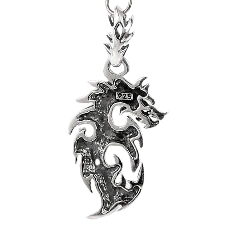 Pingente de Lobo Dragão de Chamas em Prata Esterlina