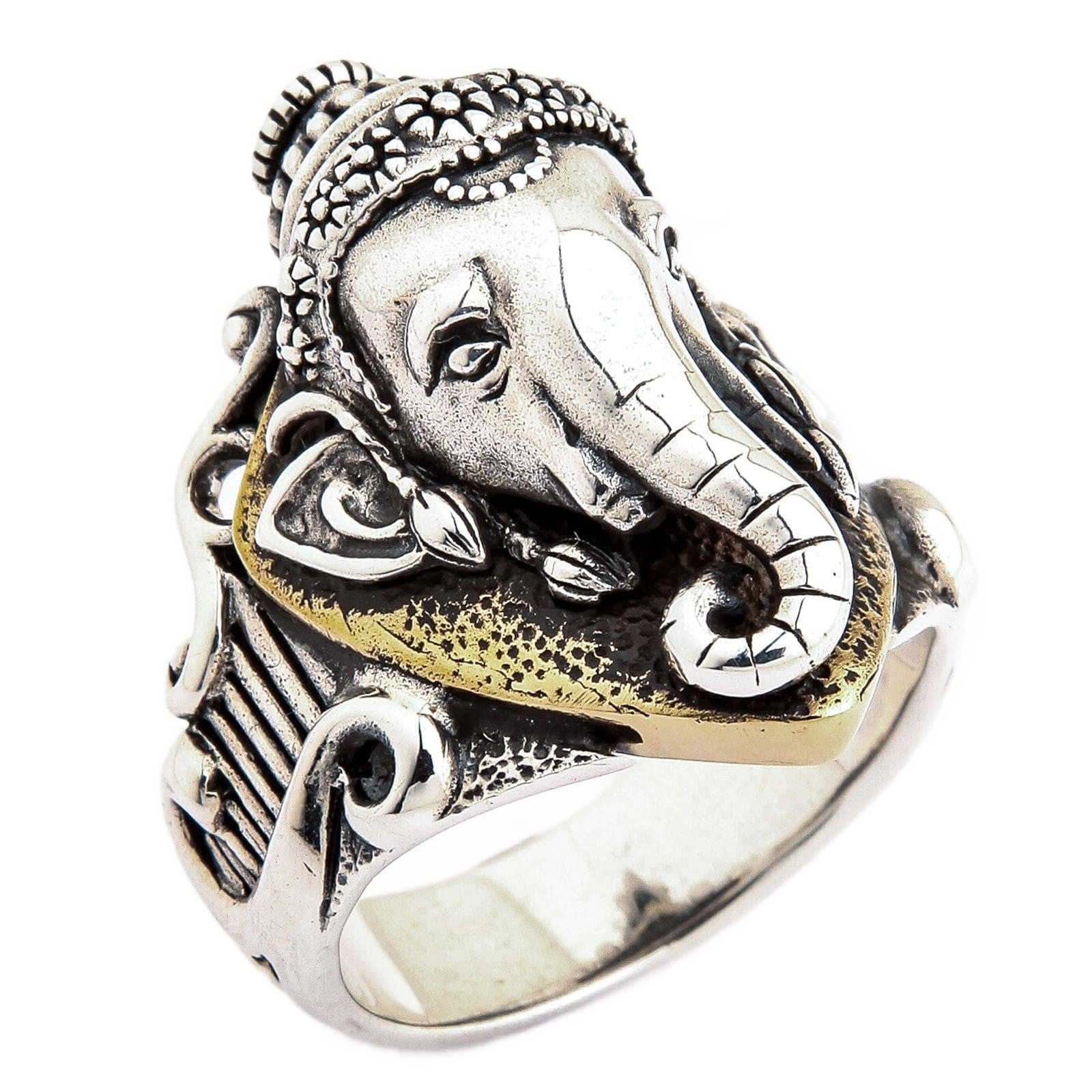 Anel do Deus Hindu Ganesha em Prata Esterlina