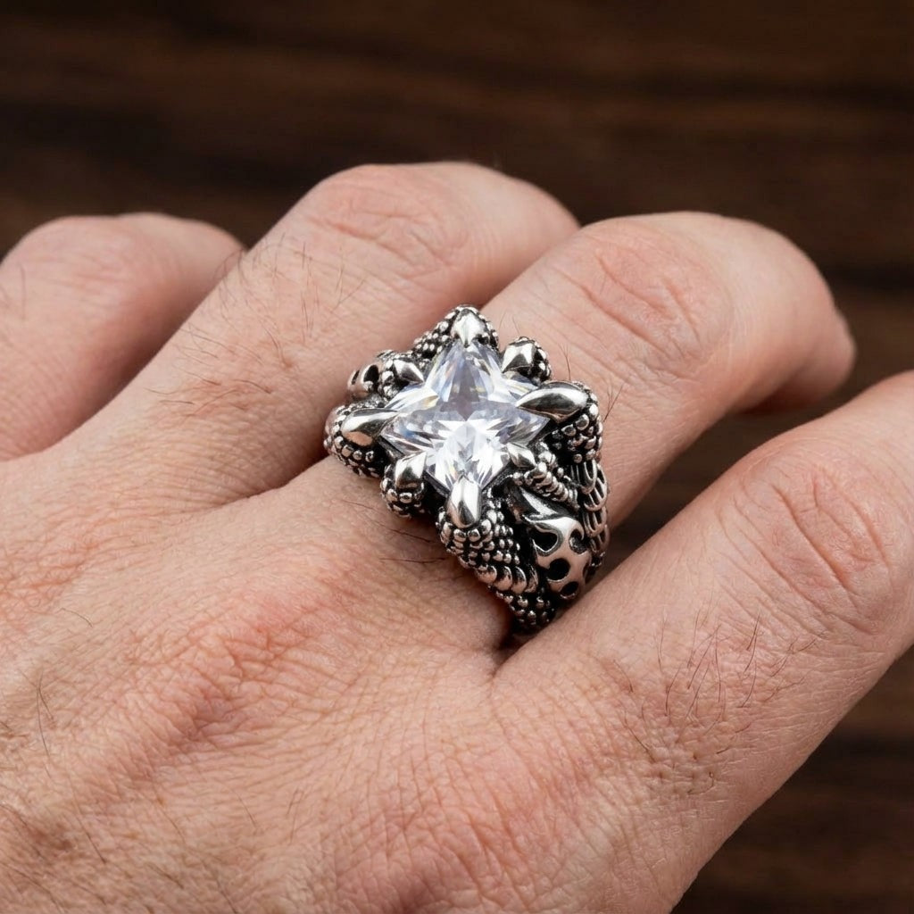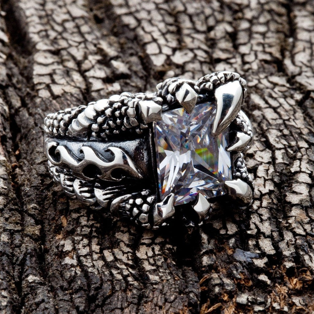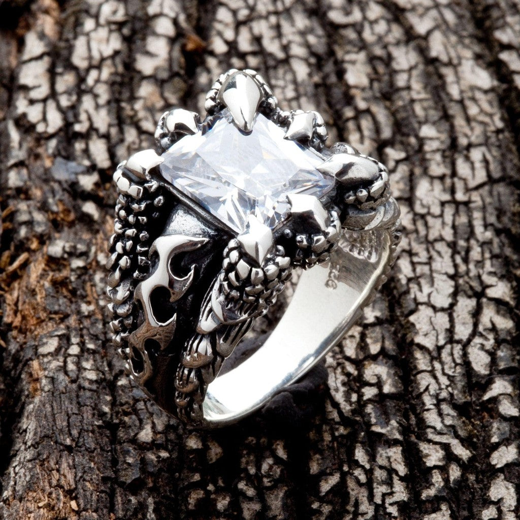 Anel Gótico de Prata Esterlina com Garra de Diamante