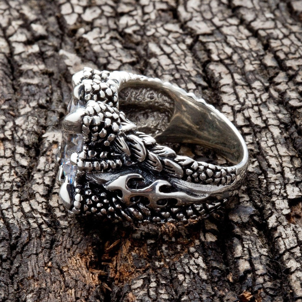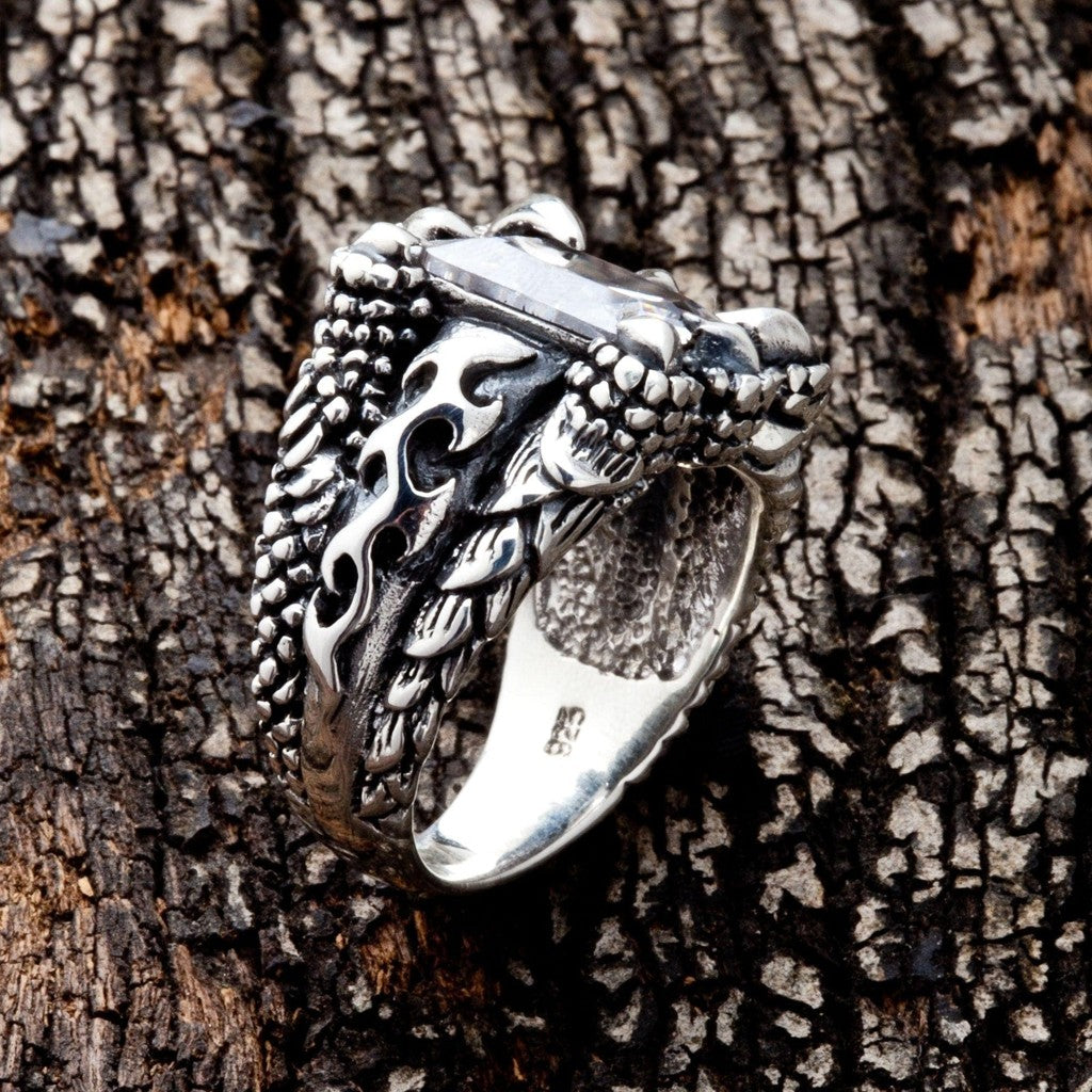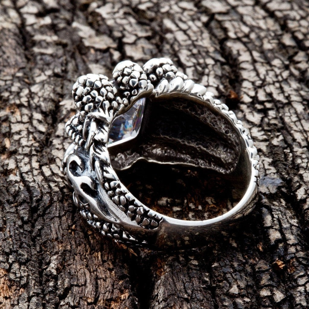 Anel Gótico de Prata Esterlina com Garra de Diamante