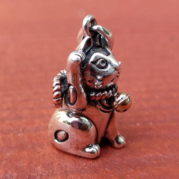 Pendente de Gato Maneki-Neko Japonês | Amuleto da Sorte em Prata de Lei 925