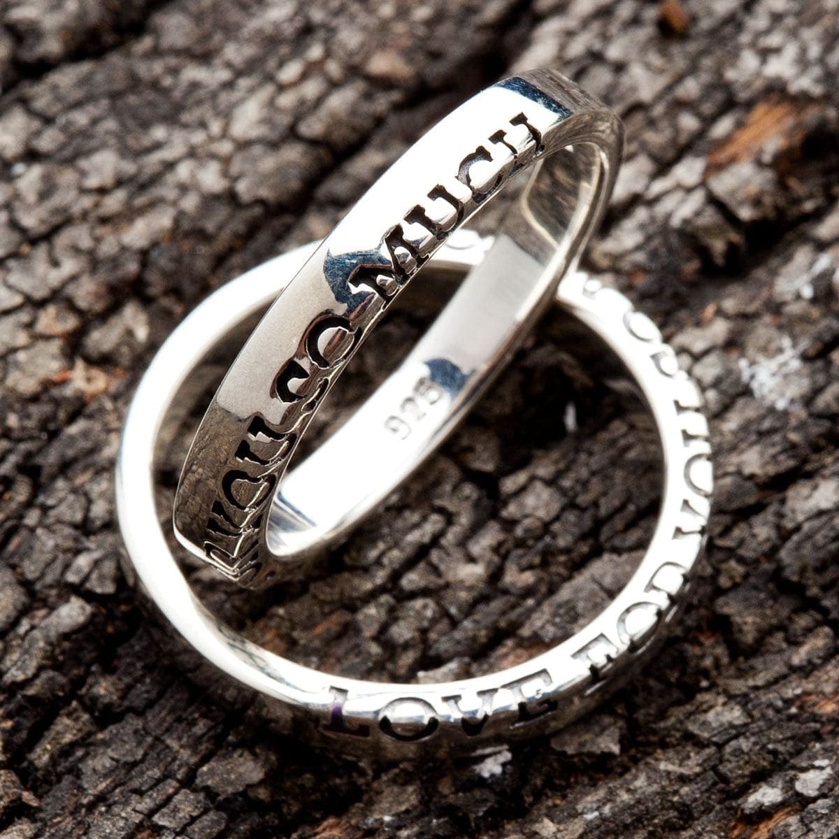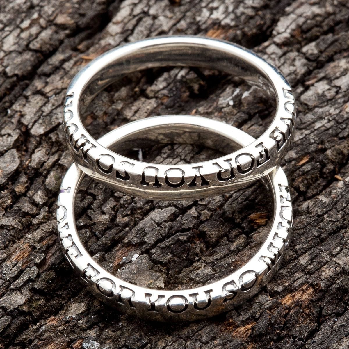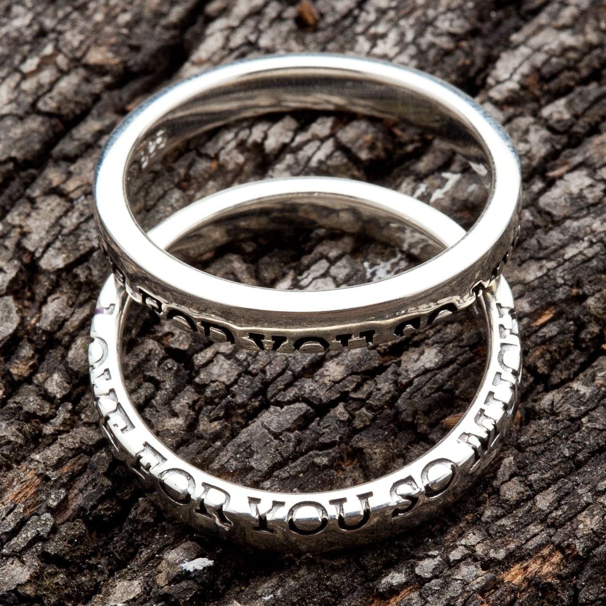 Os anéis foram cuidadosamente trabalhados em prata de lei e têm o peso necessário para garantir autenticidade. Se ainda tiver dúvidas, a marca .925 gravada no interior das bandas deve dissipá-las. Os dois anéis têm exatamente o mesmo tamanho e largura e foram polidos até obter um brilho intenso.