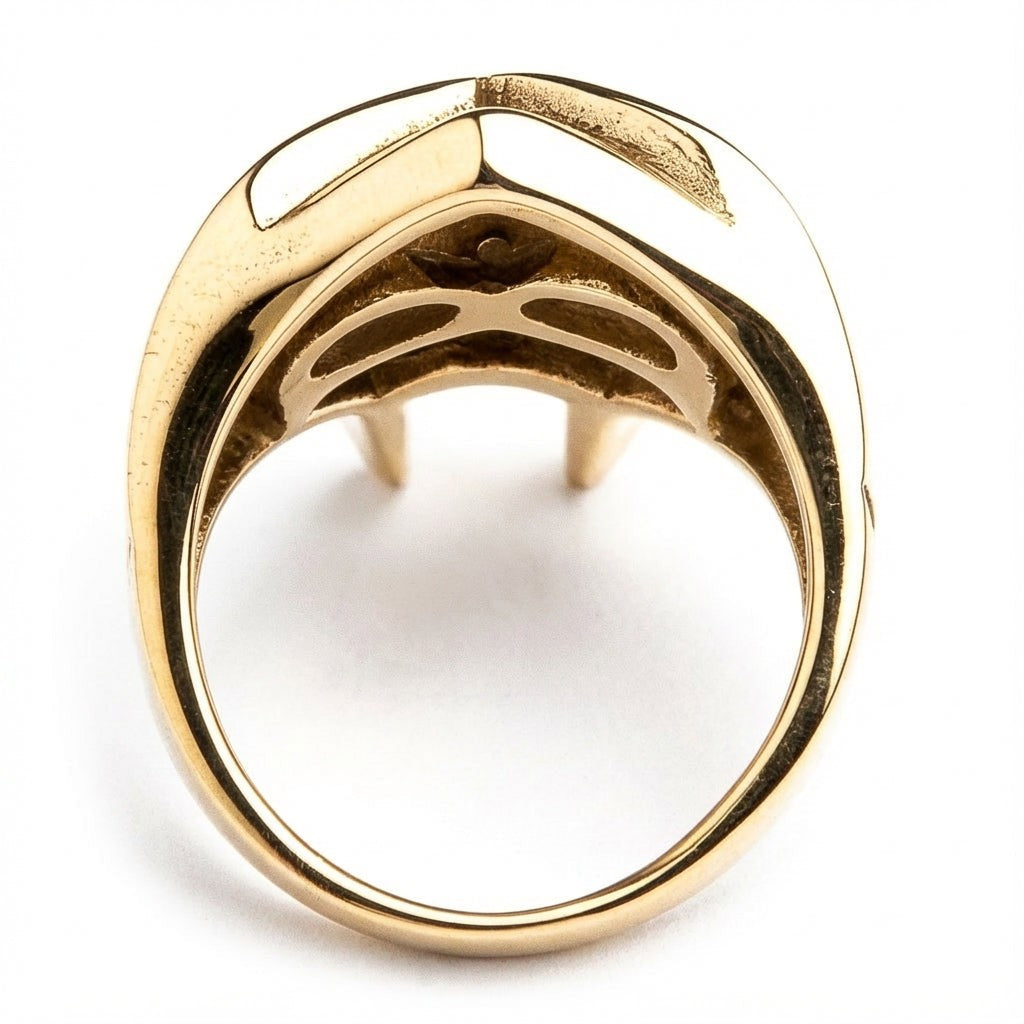 Para manter o revestimento em ouro 14K, evite expor o anel a produtos químicos agressivos, perfumes ou piscinas. Recomendamos limpá-lo suavemente com um pano macio após o uso para remover óleos e armazená-lo em um local seco.