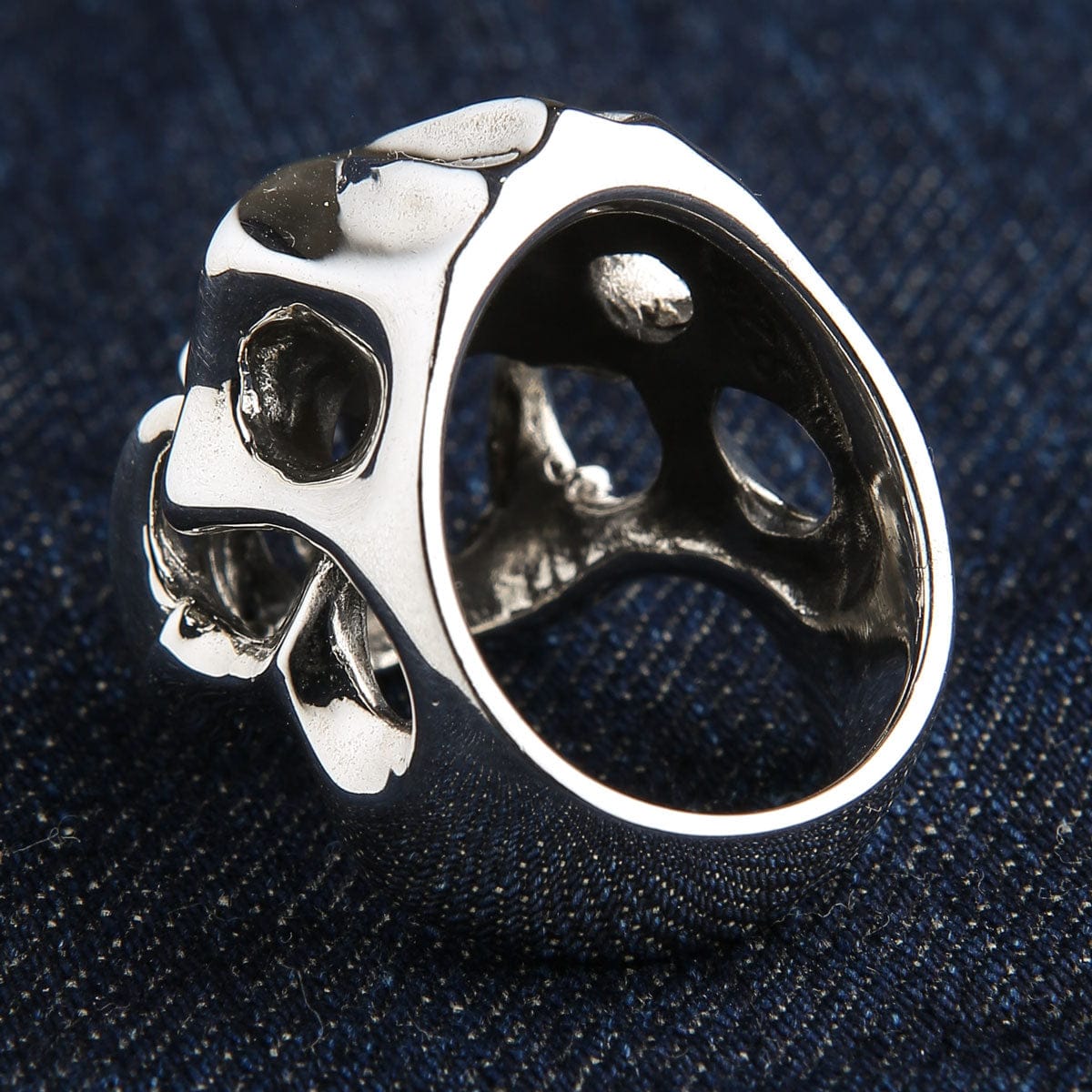 3. O anel é oco? O anel apresenta um design vazado único, o que significa que foi artisticamente esculpido para criar o seu aspeto abstrato e esquelético. No entanto, o anel em si é forjado em prata de lei 925 maciça e não é uma peça oca ou leve — os seus massivos 38 gramas atestam a sua solidez.