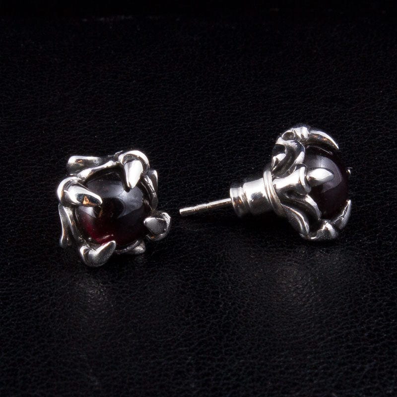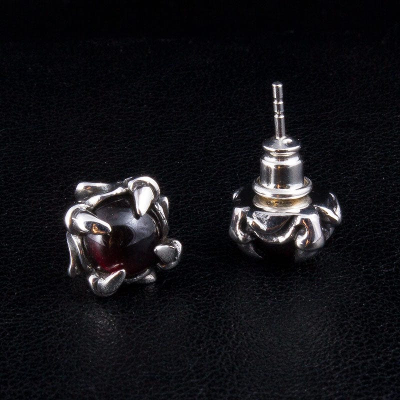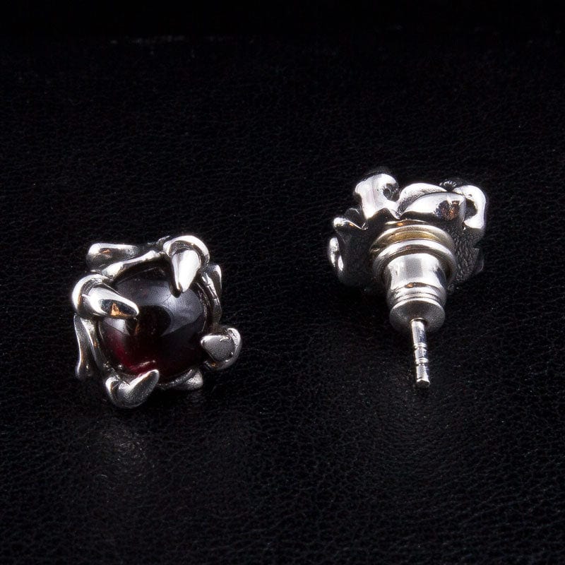 Brincos Góticos de Garra em Prata de Lei e Pedra Vermelha