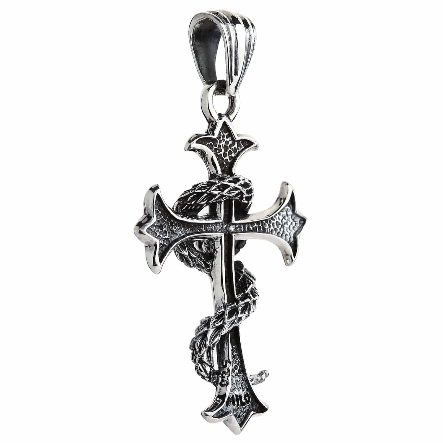 Pendente Gótico em Prata de Lei com Cruz Enrolada por Serpente