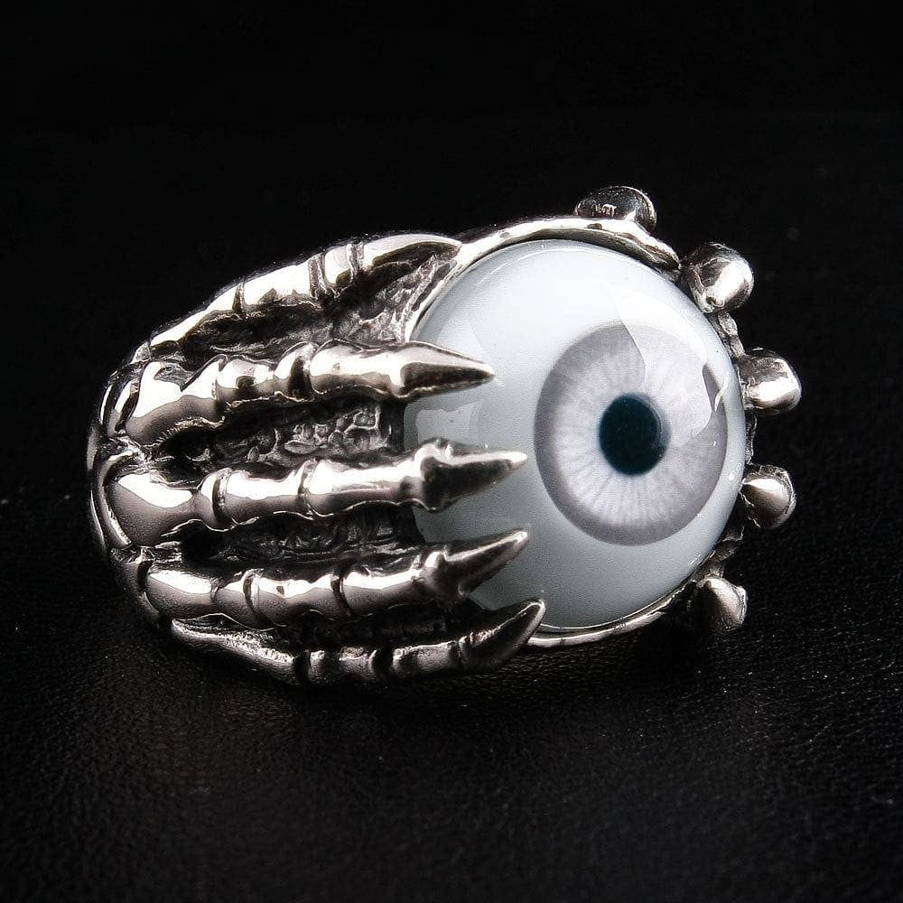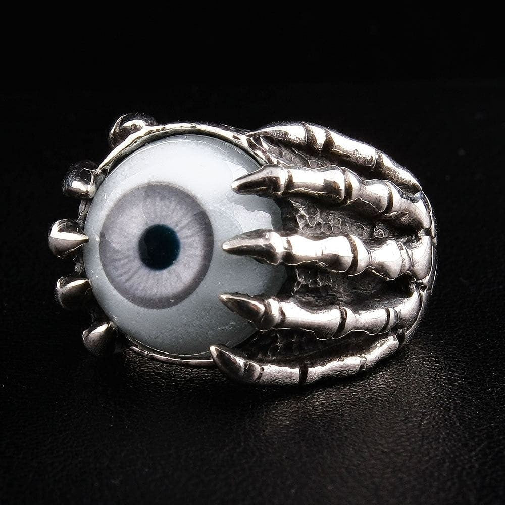 Anel de Olho de Esqueleto em Prata Esterlina - Joalharia Gótica Artesanal de Declaração