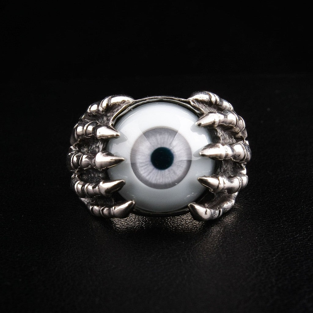 Chame a atenção com este extraordinário anel de olho em prata esterlina que captura perfeitamente a essência da arte da joalharia gótica. Este anel de garra de esqueleto feito à mão apresenta um olho de vidro cinza assombrosamente realista, firmemente segurado por dedos de osso prateado meticulosamente detalhados. Quer esteja atraído pela moda alternativa, acessórios inspirados no horror, ou simplesmente aprecie joias artesanais únicas, este anel de olho maligno oferece uma peça de declaração inesquecível que o distingue do comum.