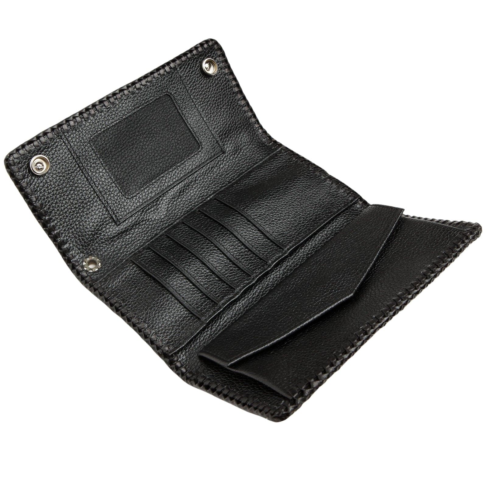 📏 Dimensões Perfeitas para Motards: Uma carteira longa clássica, com 18,4 cm x 9,2 cm, desenhada para caber perfeitamente no bolso de trás e ligar-se a uma corrente para maior segurança.