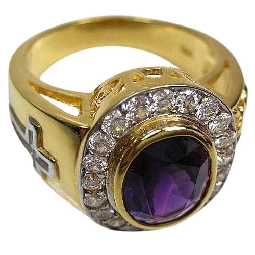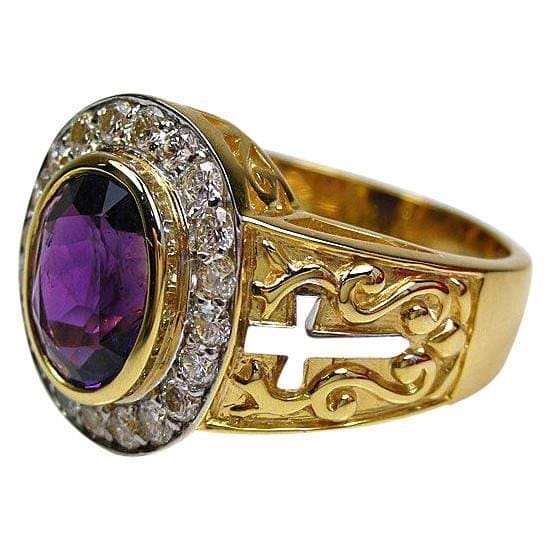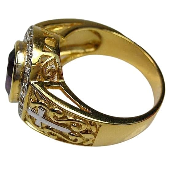 Inel cruce episcopală bicolor aur & argint cu ametist