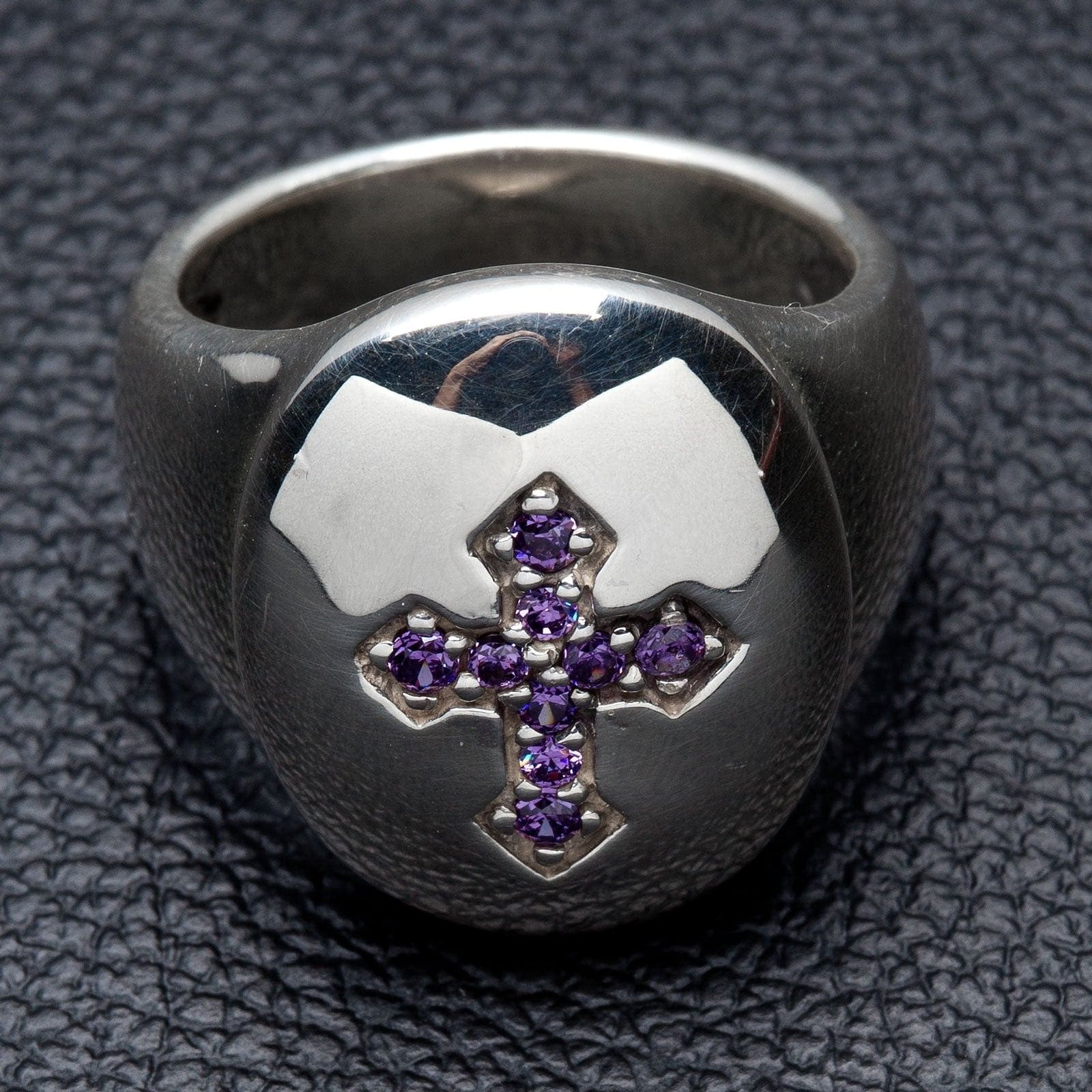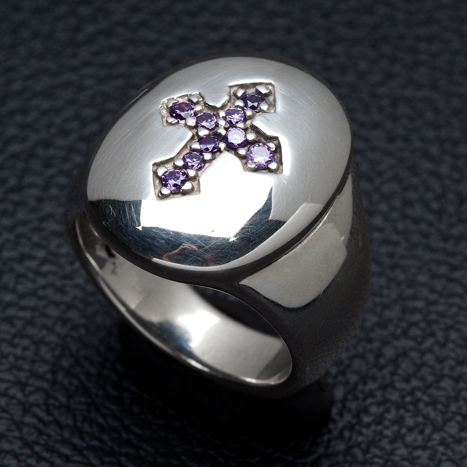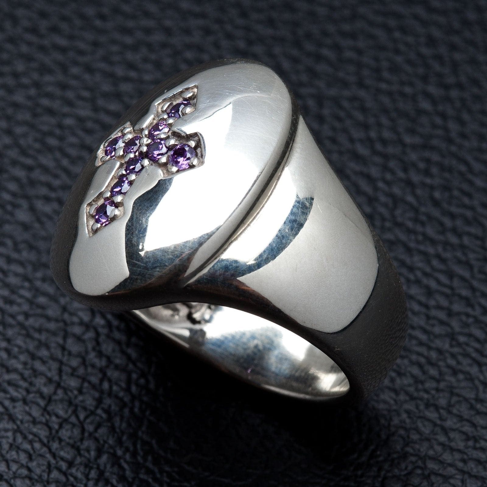 🔥 Poartă-ți eleganța cu mândrie—comandă-ți inelul Amethyst Cross din argint sterling chiar azi! ✝️💜
