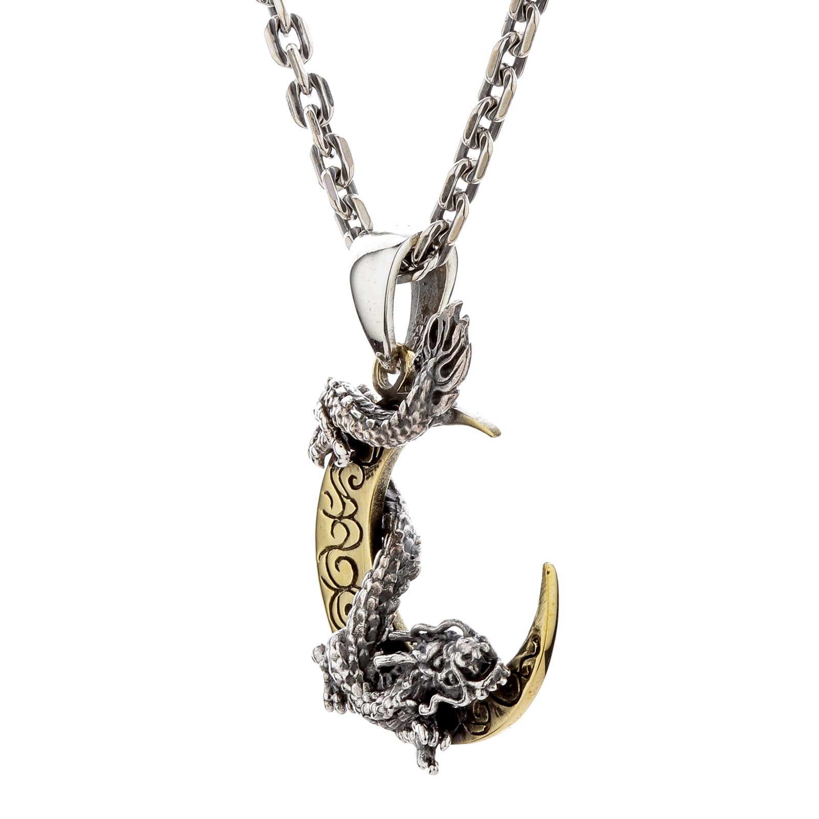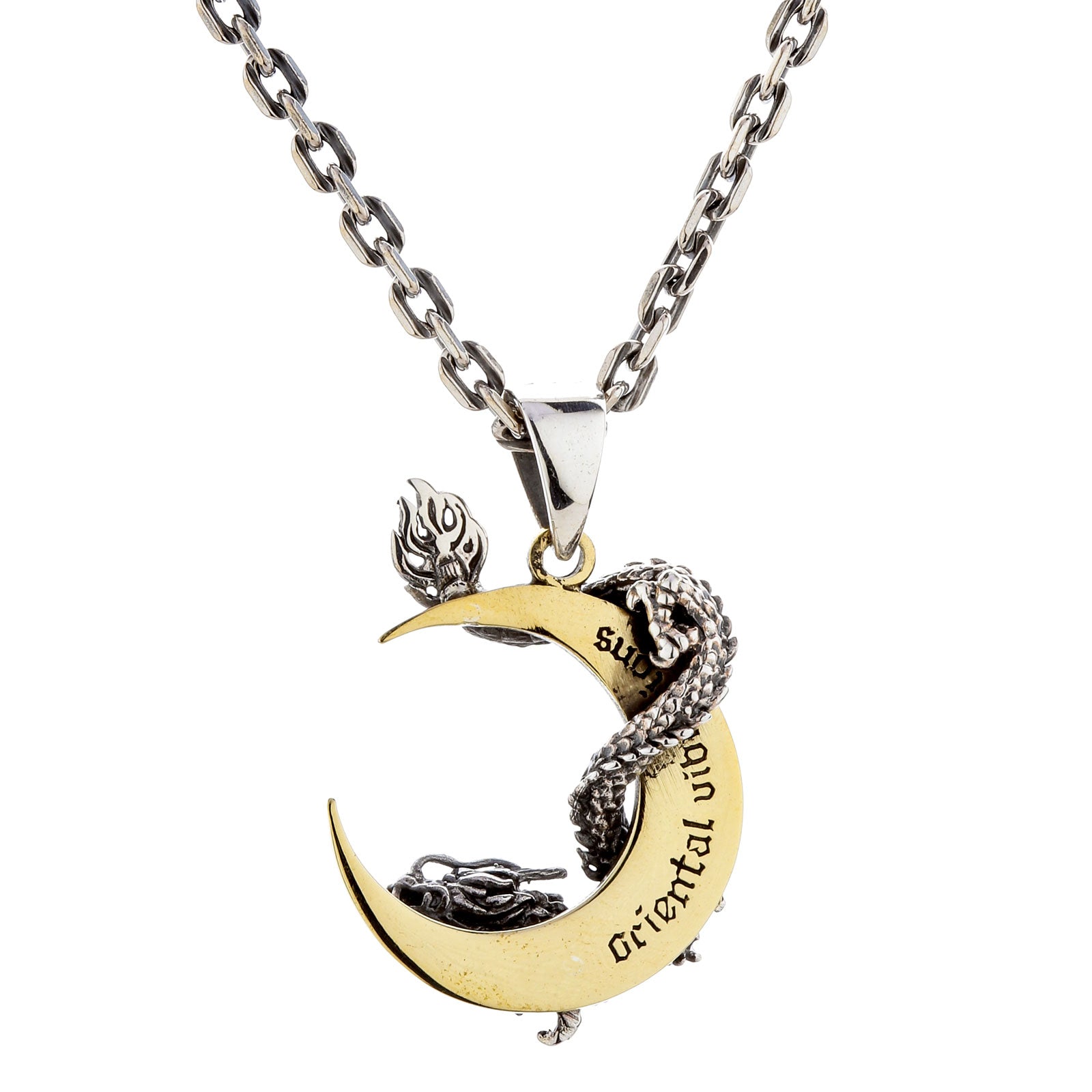 Pandantiv din argint sterling cu dragon și lună în formă de semilună