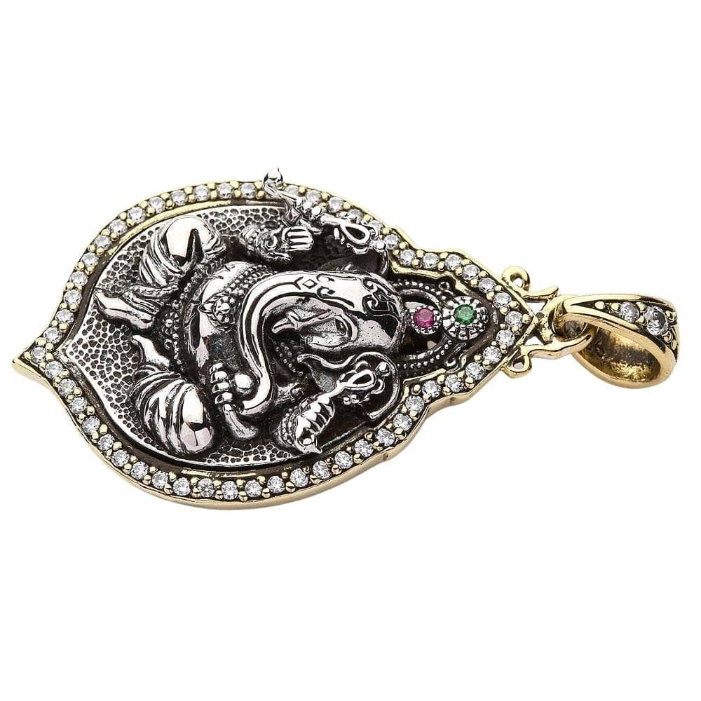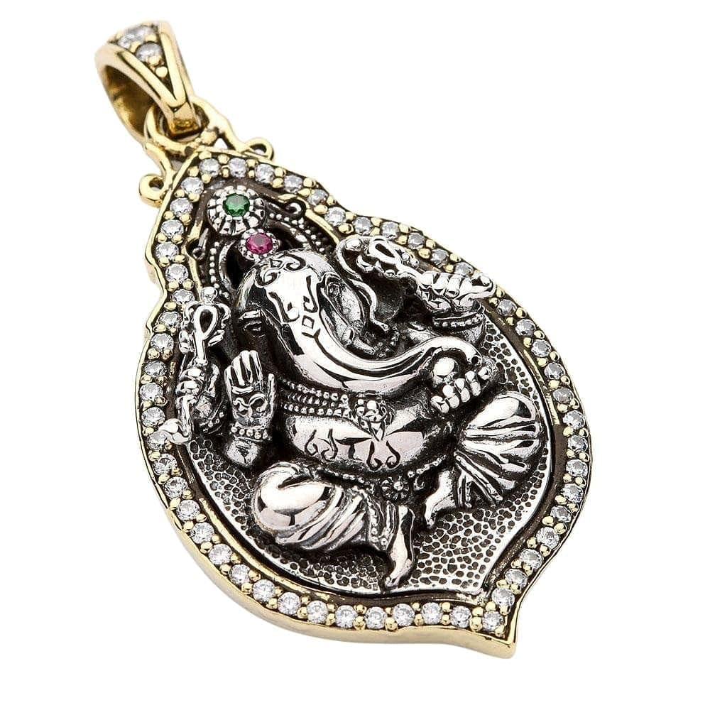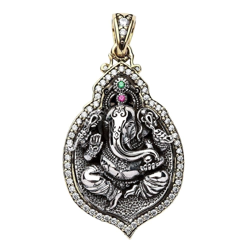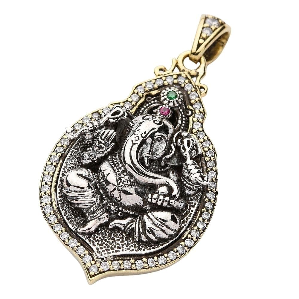 Colier cu pandantiv medalion Ganesh, zeul hindus, din argint sterlin
