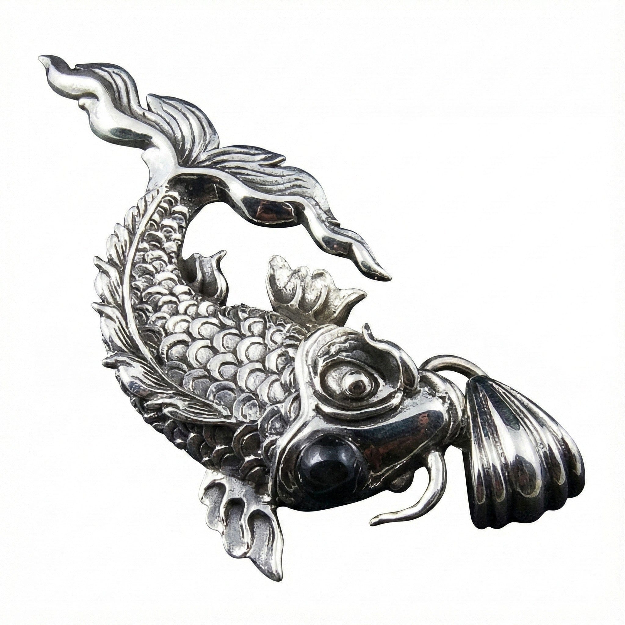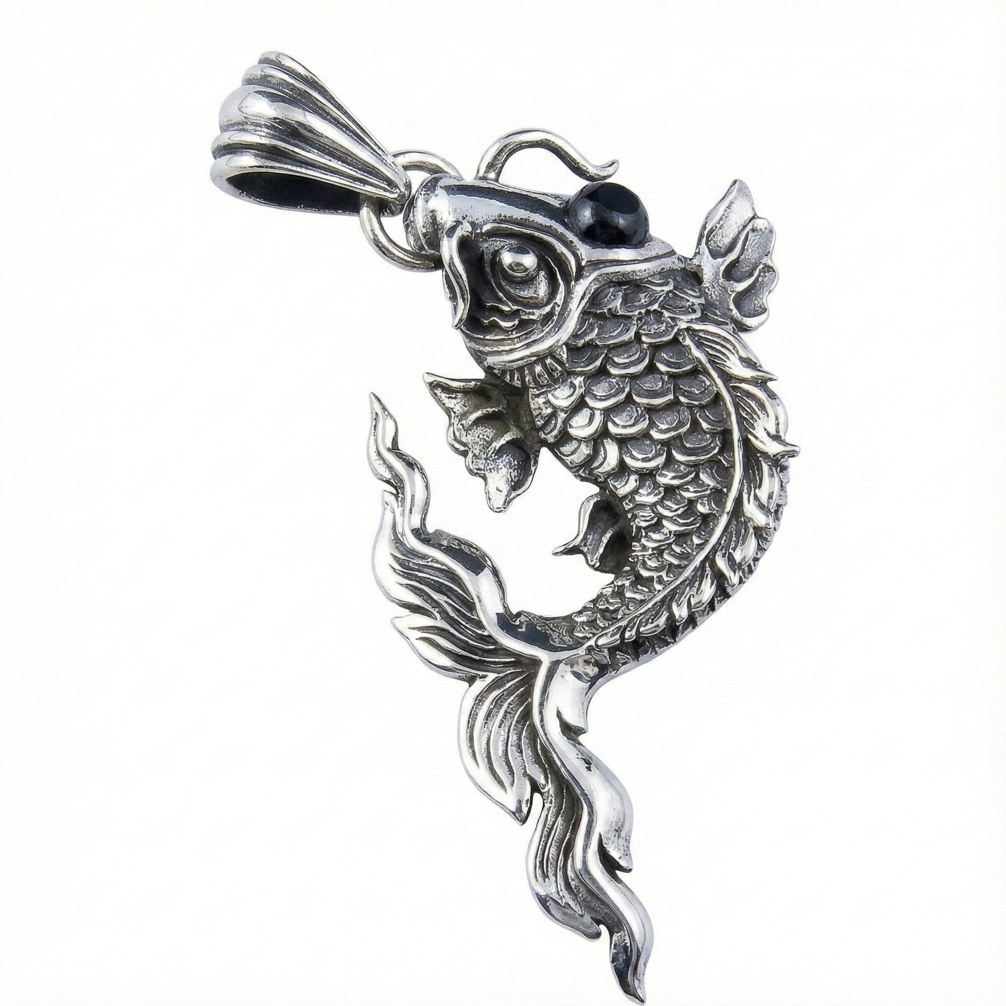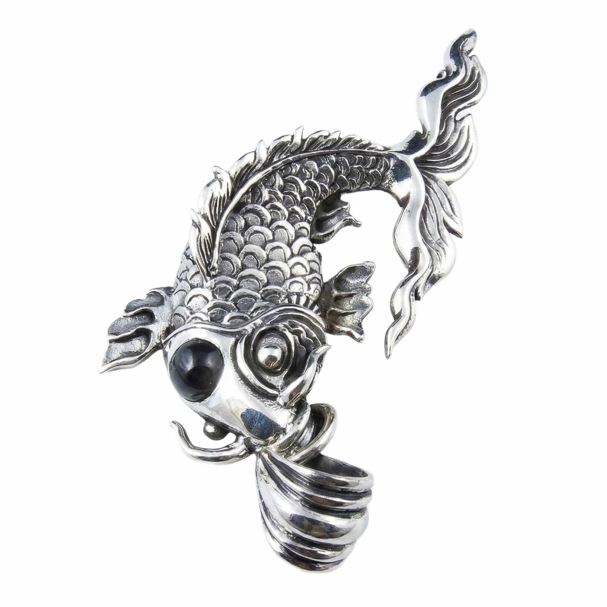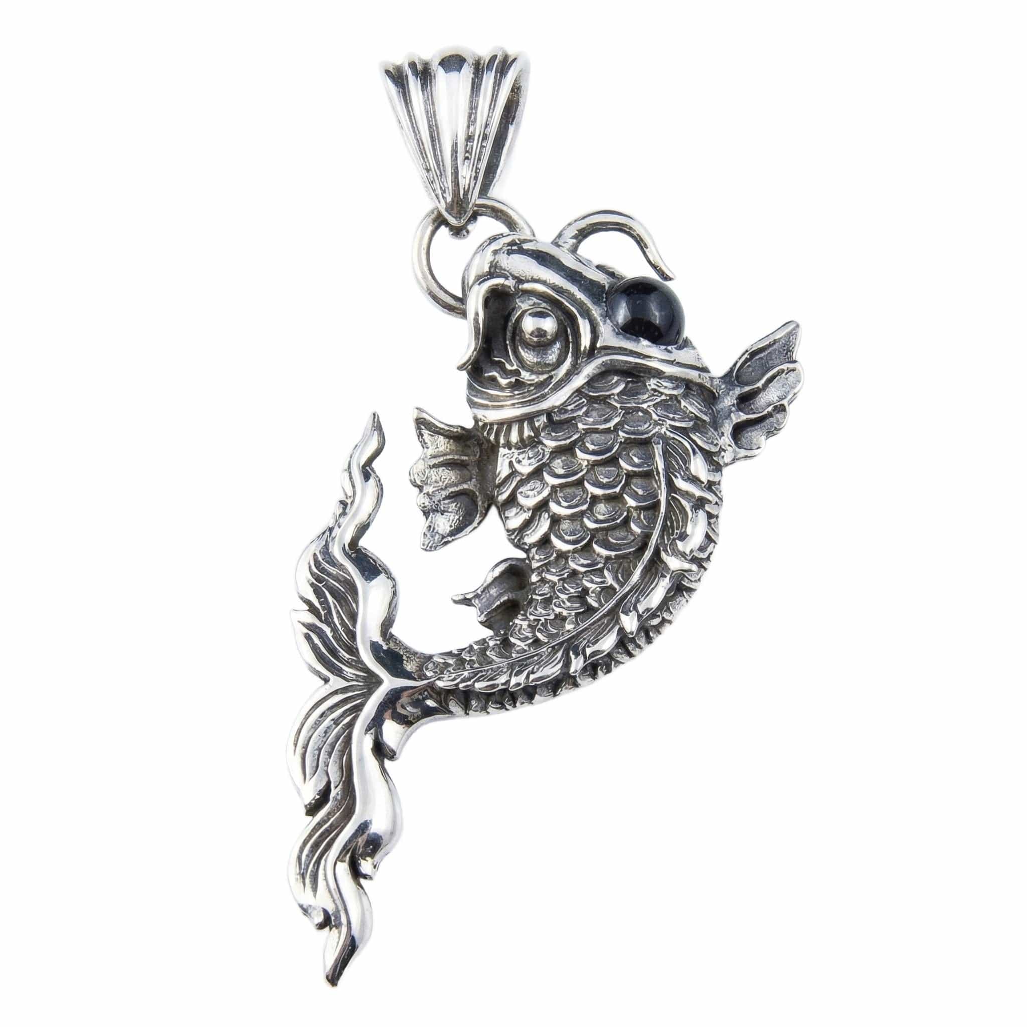 Pandantiv gotic din argint sterlin cu piatră neagră Koi japonez