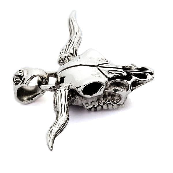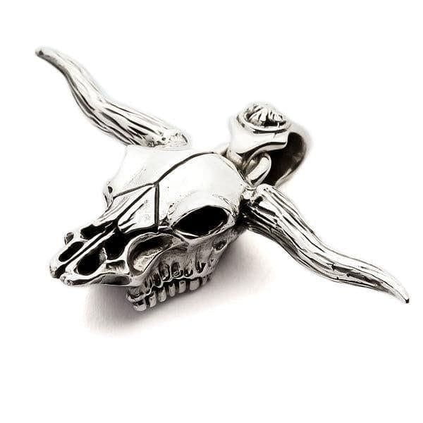 Pandantiv cu craniu de taur Longhorn – Pandantiv bărbătesc din argint cu craniu de taur și bivol