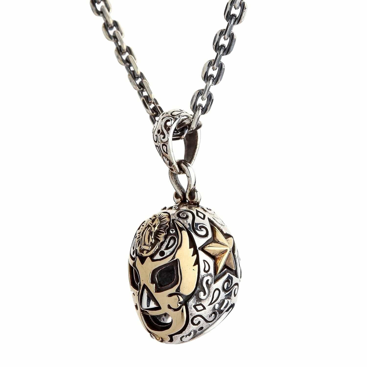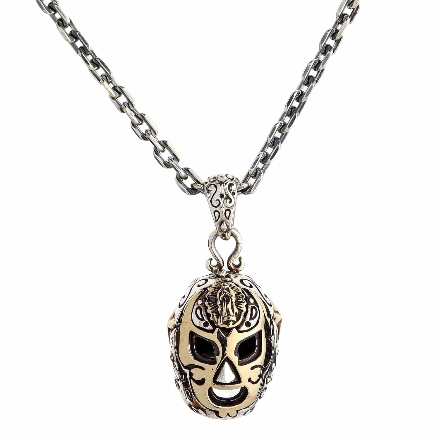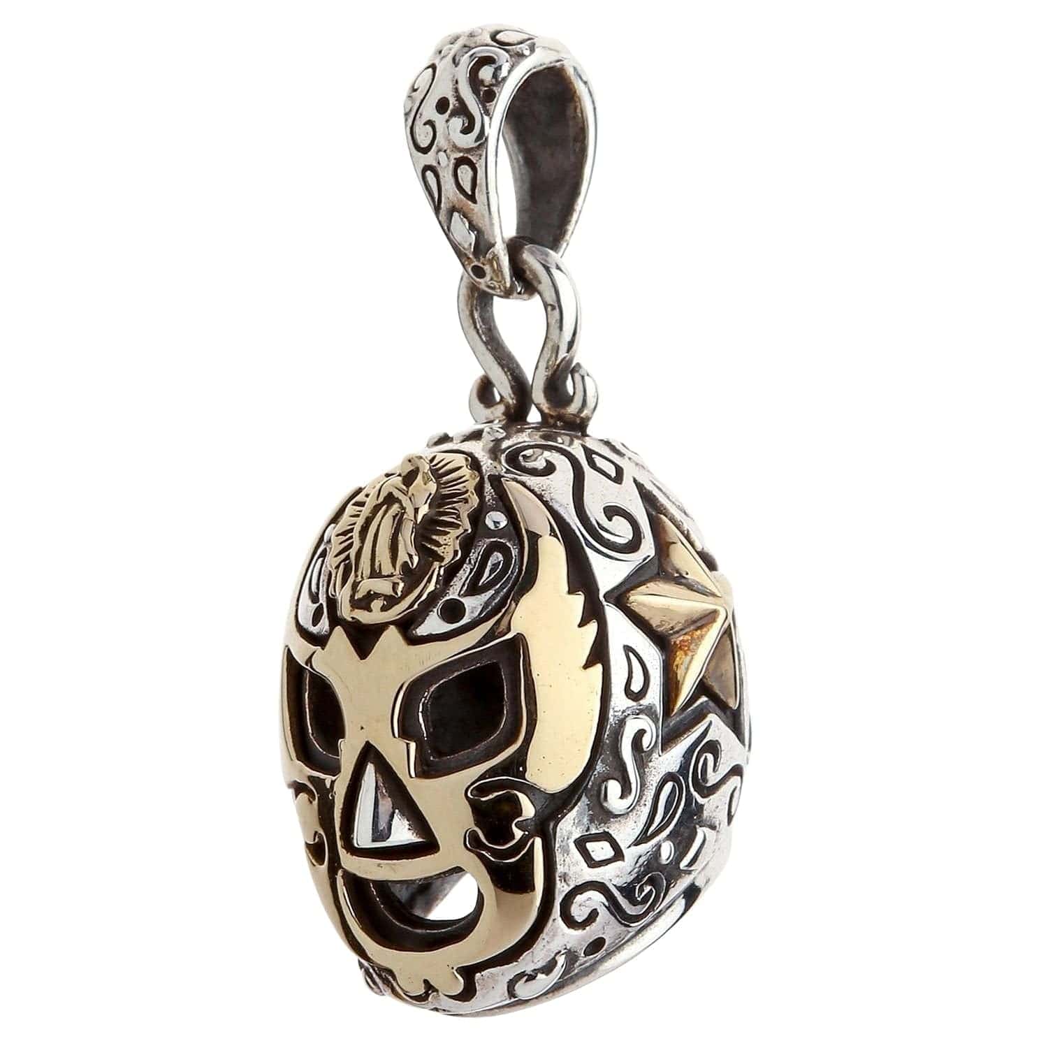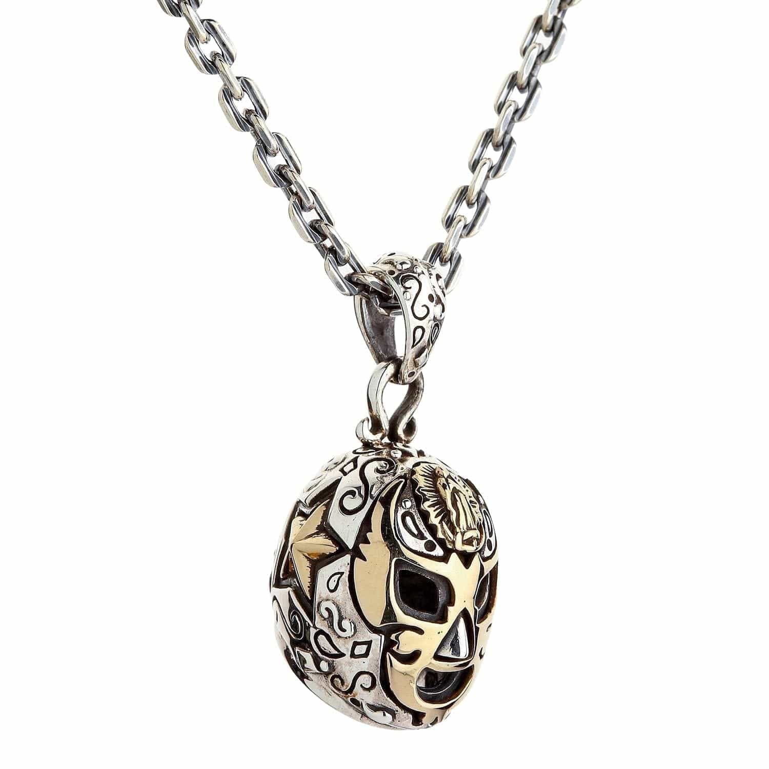 Pandantiv Mască Lucha Libre – Bijuterie Mexicană de Lupte din Argint și Alamă