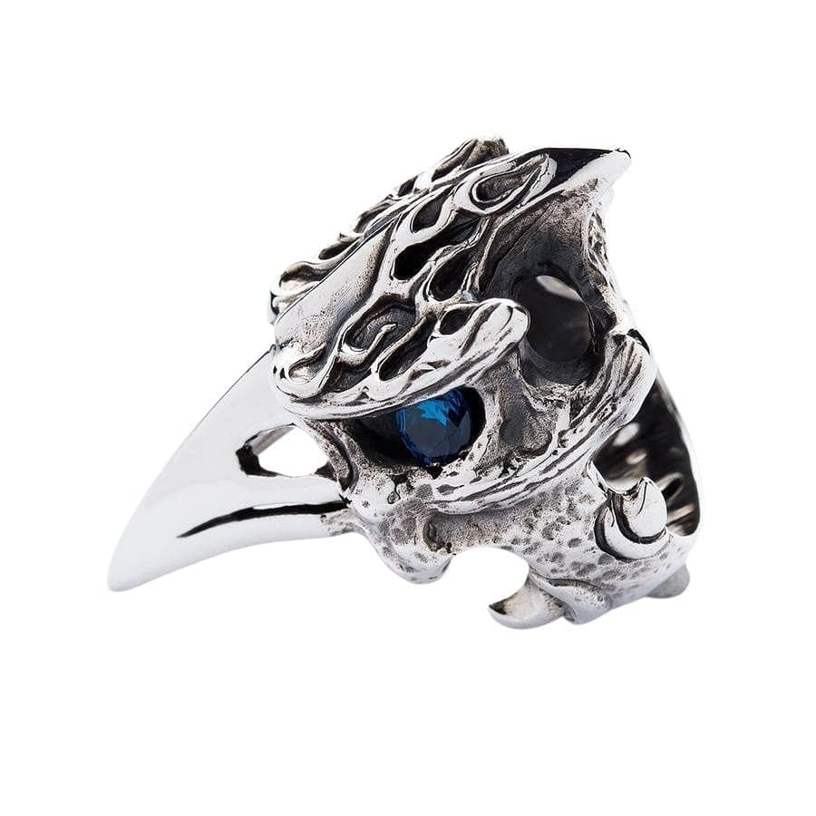 Inel de motociclist cu cap de calao cu corn și ochi de topaz albastru