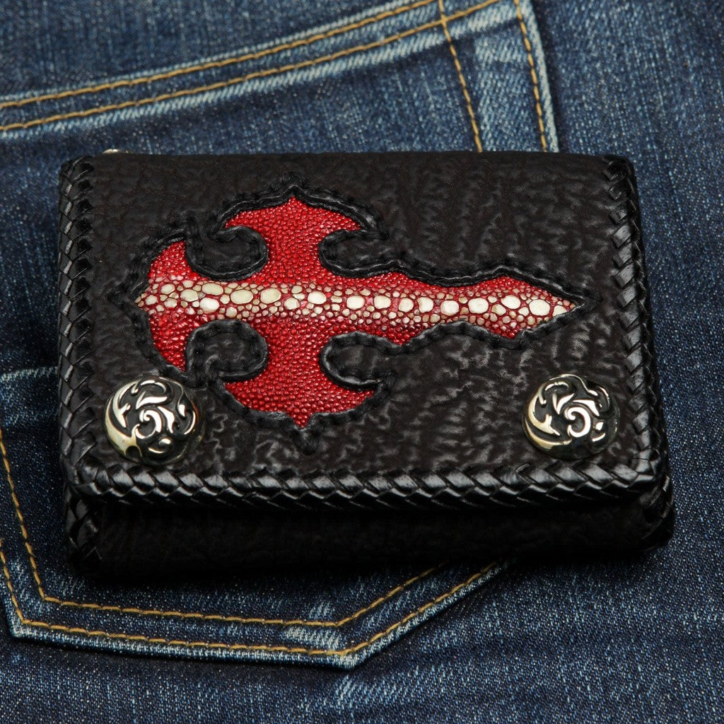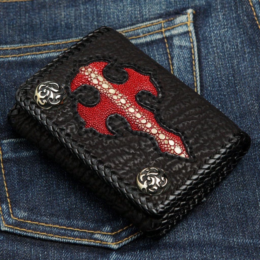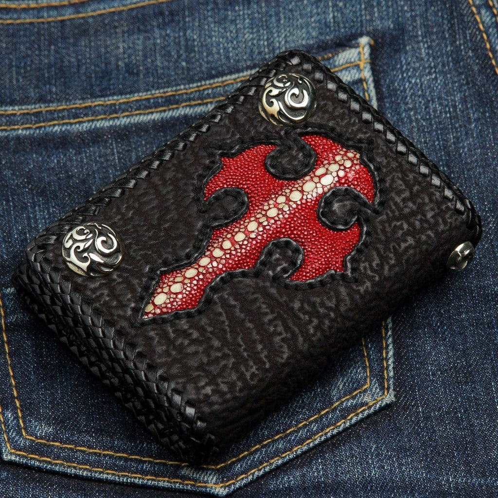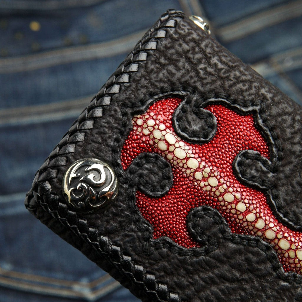 🔥 Portofel biker gotic roșu din piele naturală cu lanț 🔥