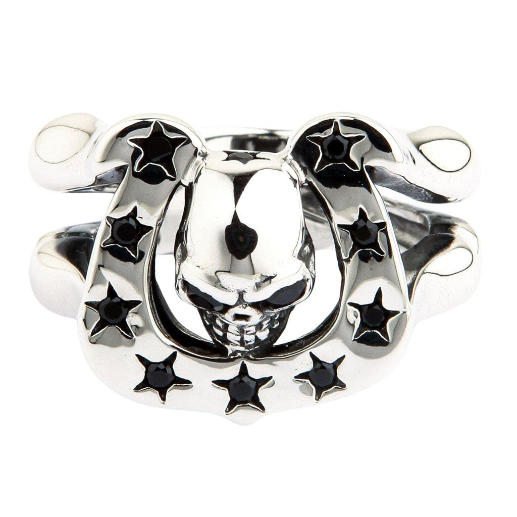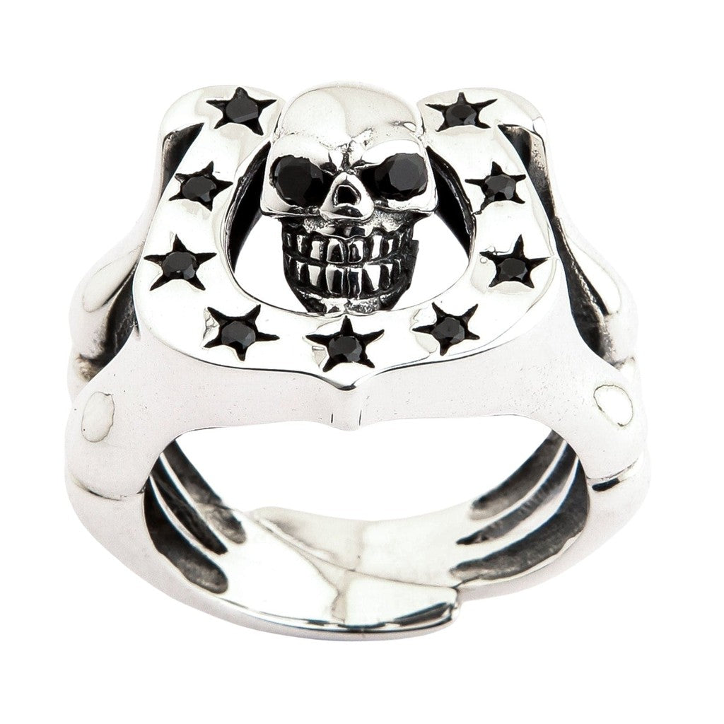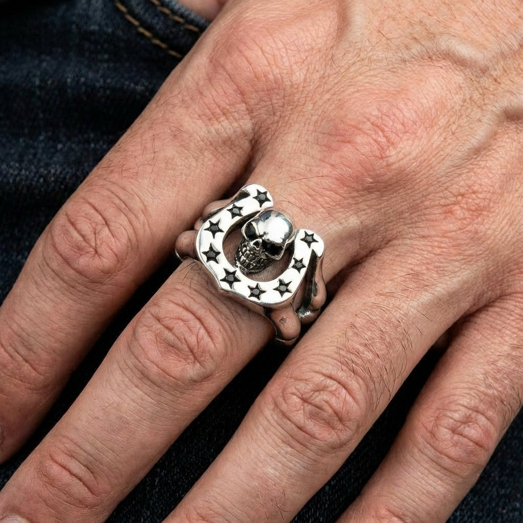 Inele de motociclist cu craniu din argint Sterling în formă de potcoavă