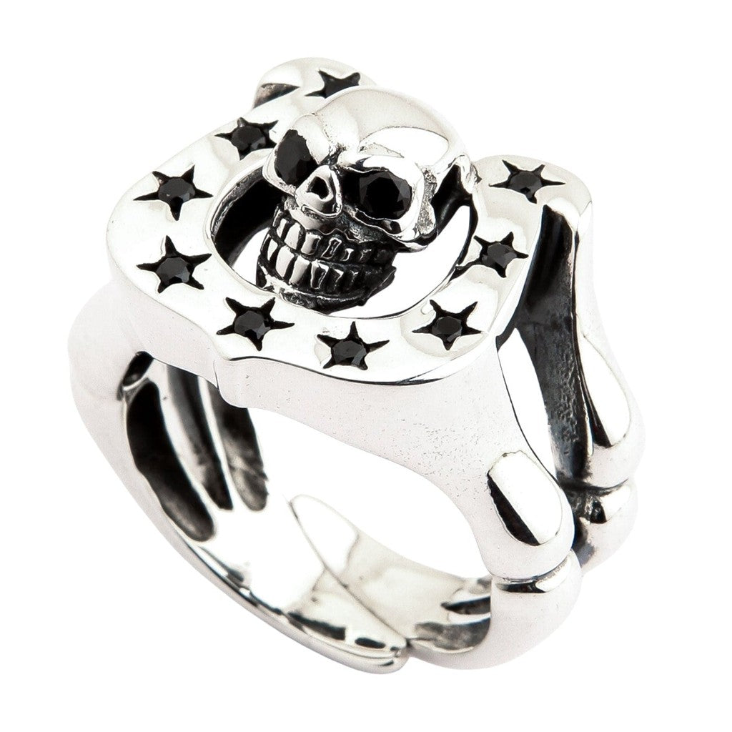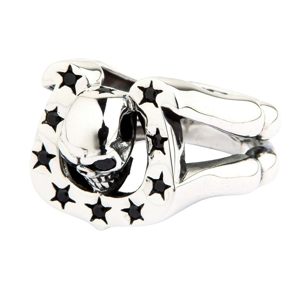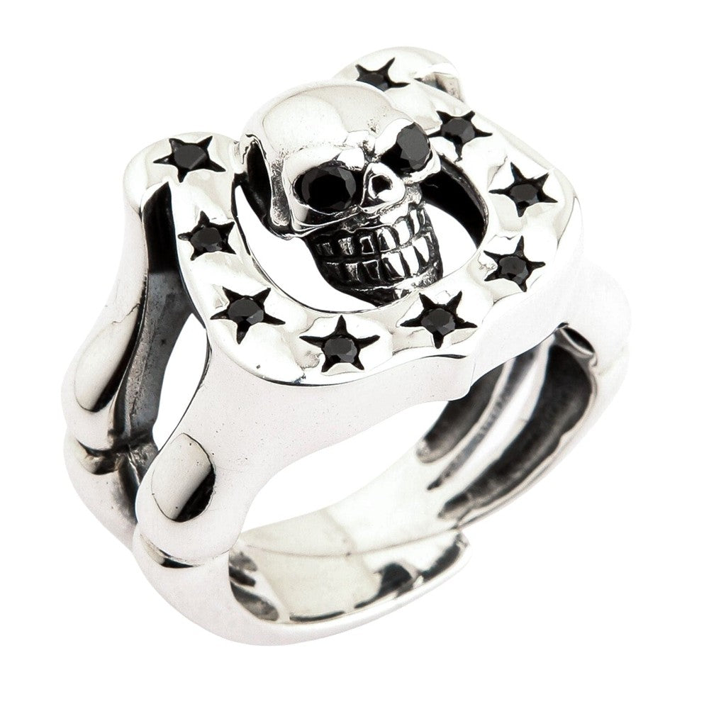 Inele de motociclist cu craniu din argint Sterling în formă de potcoavă