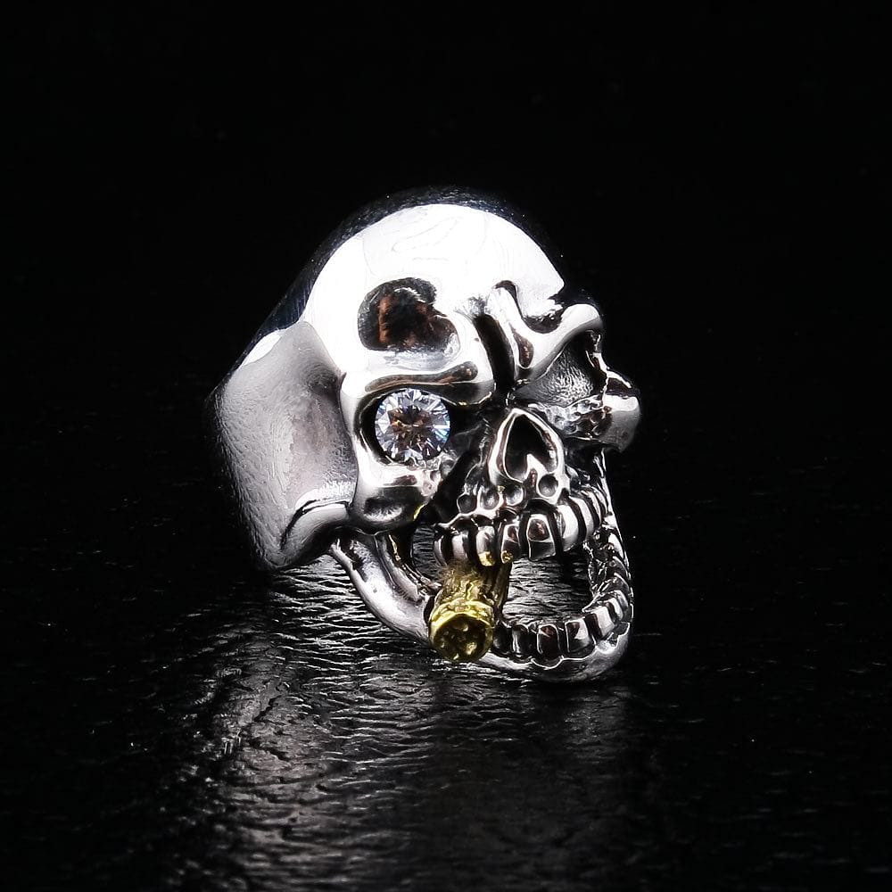Inel Craniu Fumător din Argint cu Ochi din Diamant