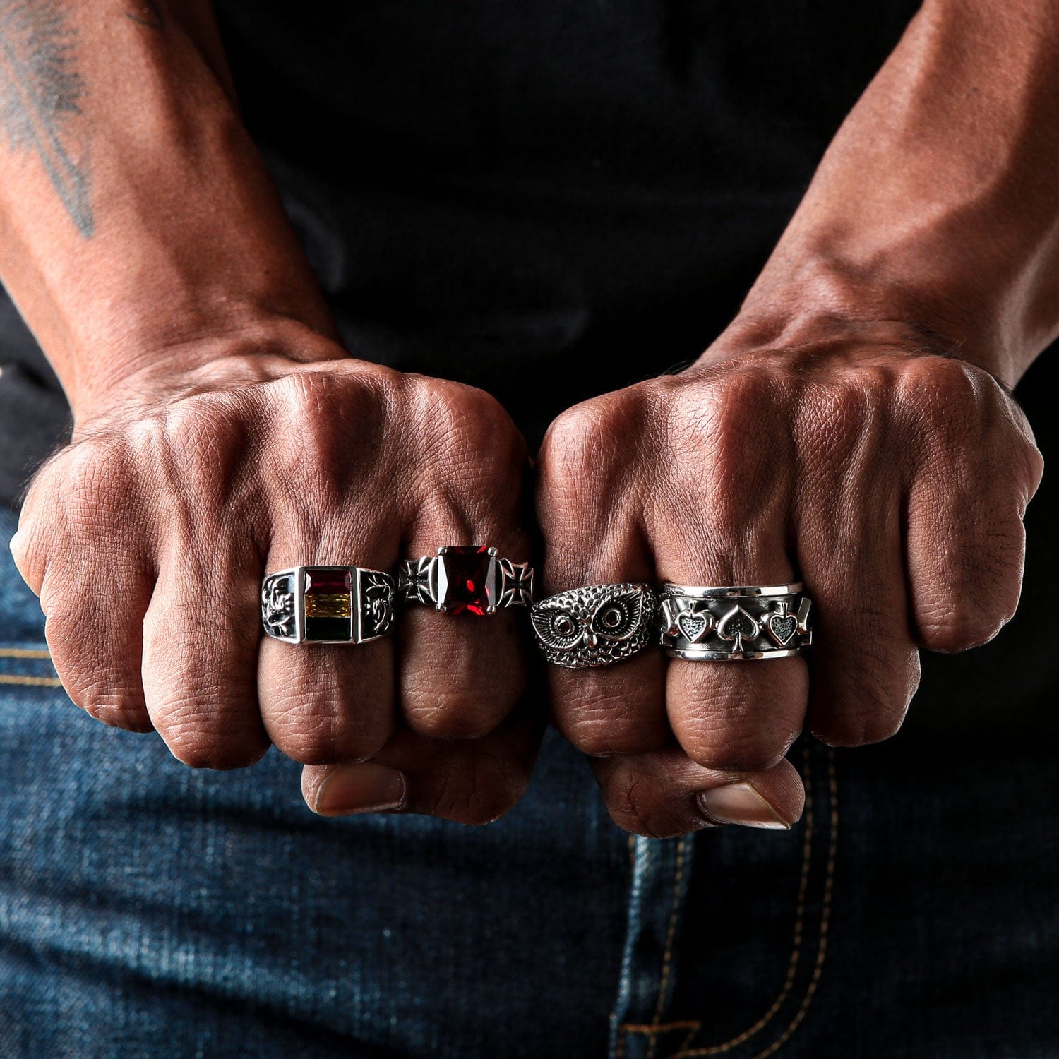 3. Este acesta un inel biker greu din argint? Da. Având o greutate de aproximativ 19 grame și o bandă foarte lată de 14 mm, acesta este un inel masiv și greu. Greutatea, durabilitatea și simbolismul său îndrăzneț îl fac o piesă perfectă pentru bijuterii biker sau gotice.