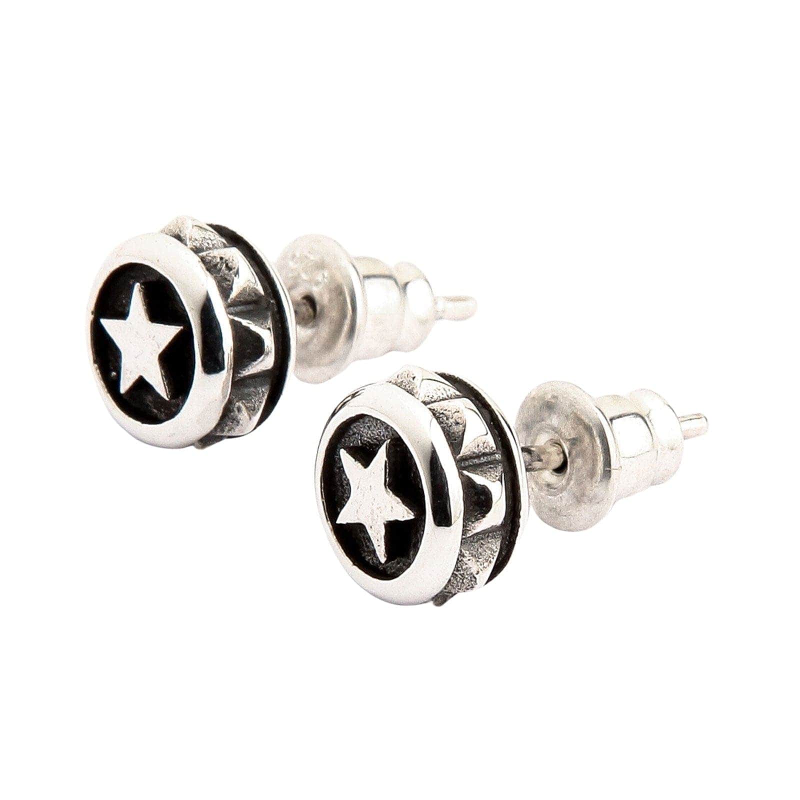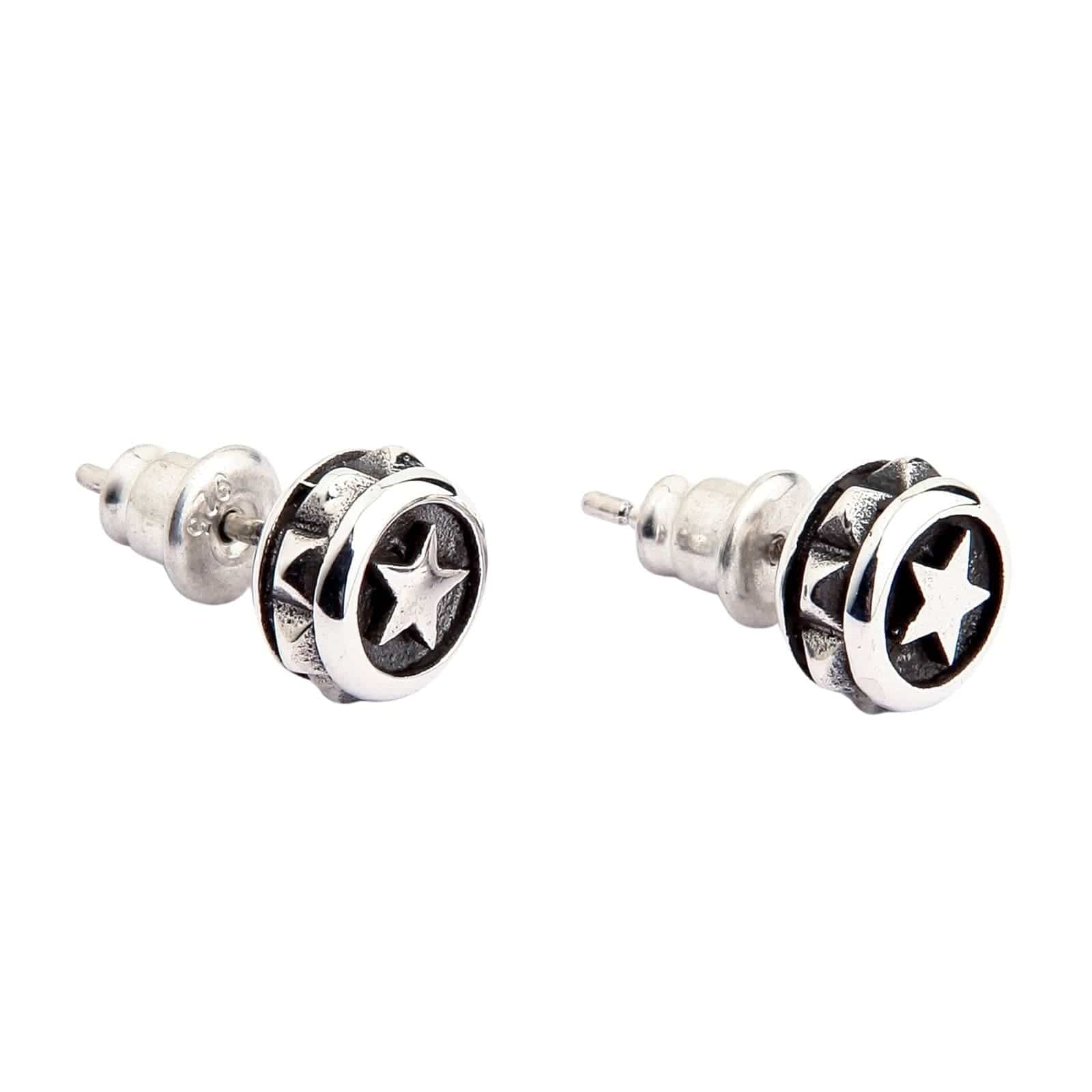 Designul are în centru o stea cu cinci colțuri îndrăzneață, un simbol atemporal al aspirației și al realizării personale. Ceea ce diferențiază cu adevărat acești cercei este folosirea magistrală a contrastului; steaua este lustruită intens și așezată pe un fundal adânc oxidat. Această tehnică clasică creează o profundime vizuală incredibilă, făcând steaua să pară că iese în evidență. Marginea robustă și texturată adaugă o notă distinctă de stil biker, dură și rafinată în același timp. Fiind o piesă lucrată manual, fiecare cercel poartă amprenta artizanului, asigurând unicitatea fiecărei perechi. Dimensiunea lor versatilă de 8 mm le face perfecte pentru purta zilnic, oferind o notă de rebeliune fără a fi prea ostentative.