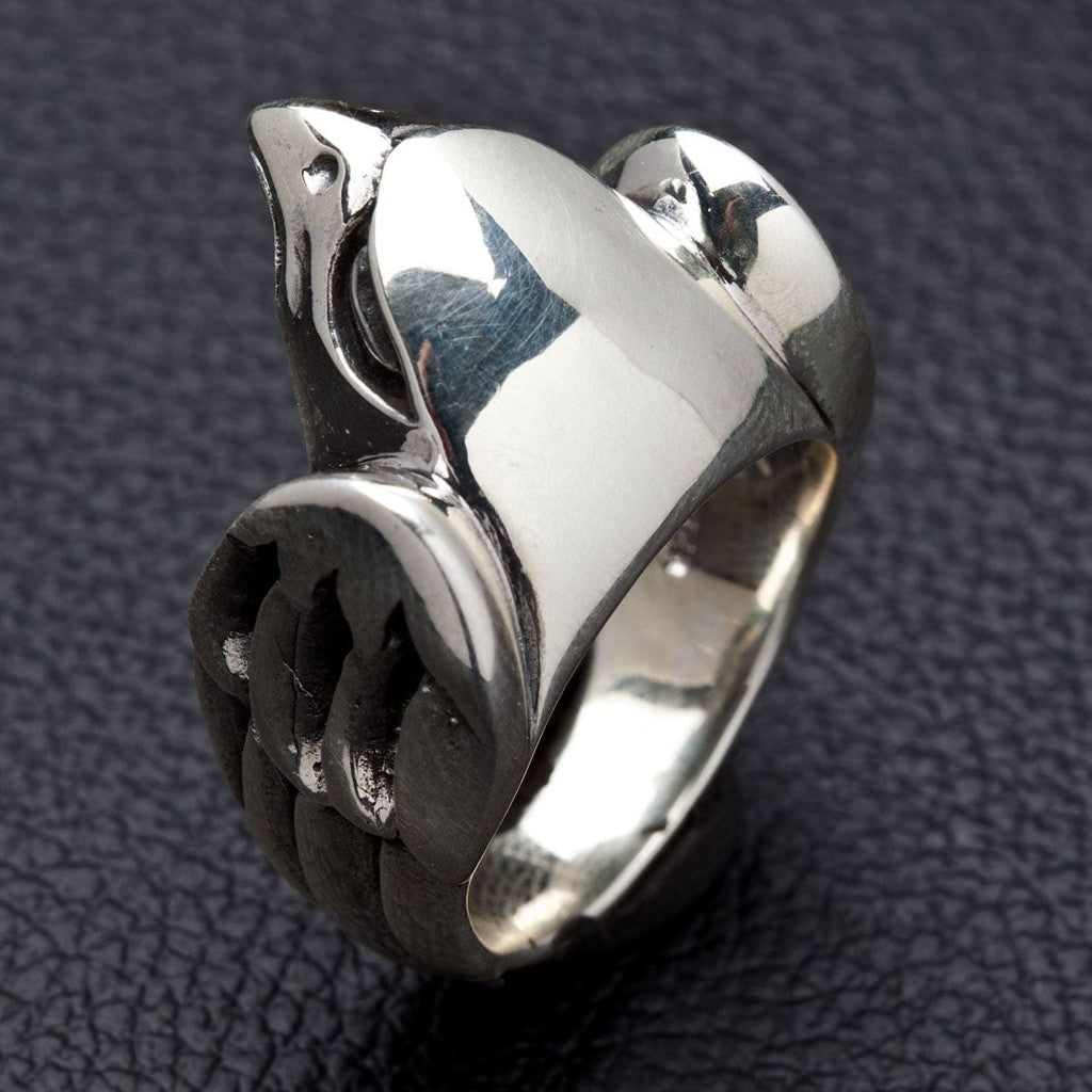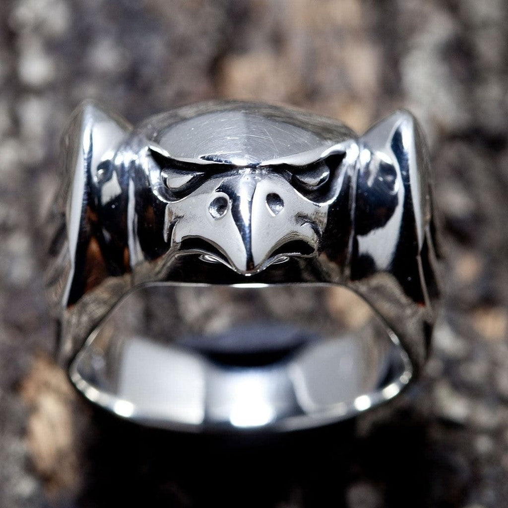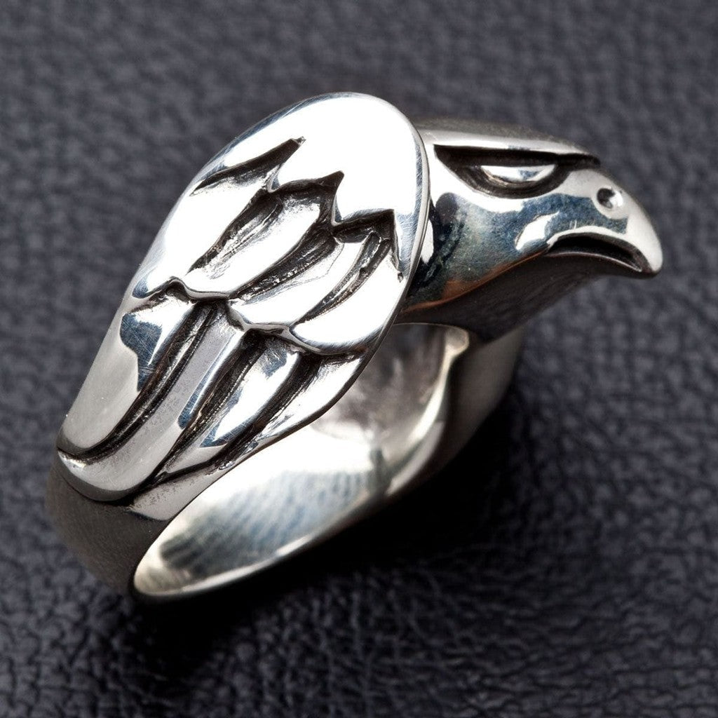 Considerat mesager al îngerilor, șoimul modest își face loc printre accesoriile tale cu acest inel bărbătesc unic. Redând privirea caracteristică a păsării și aripile ridicate, această piesă este mai subțire decât alte modele ale noastre, dar păstrează un nivel impresionant de detaliu. A fost realizată manual de meșterii noștri argintari și finisată la cele mai înalte standarde.