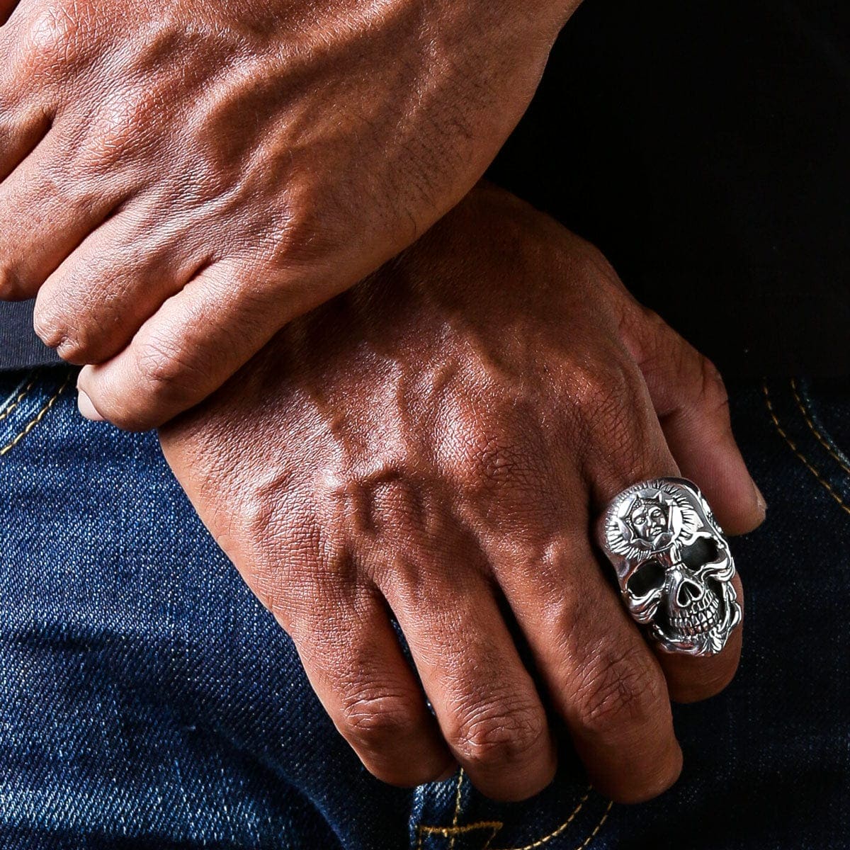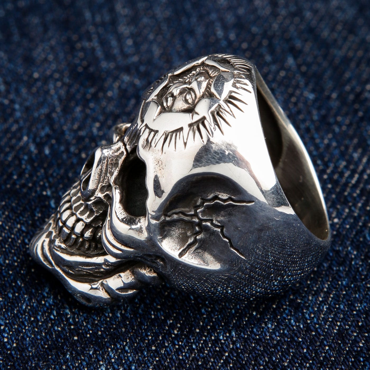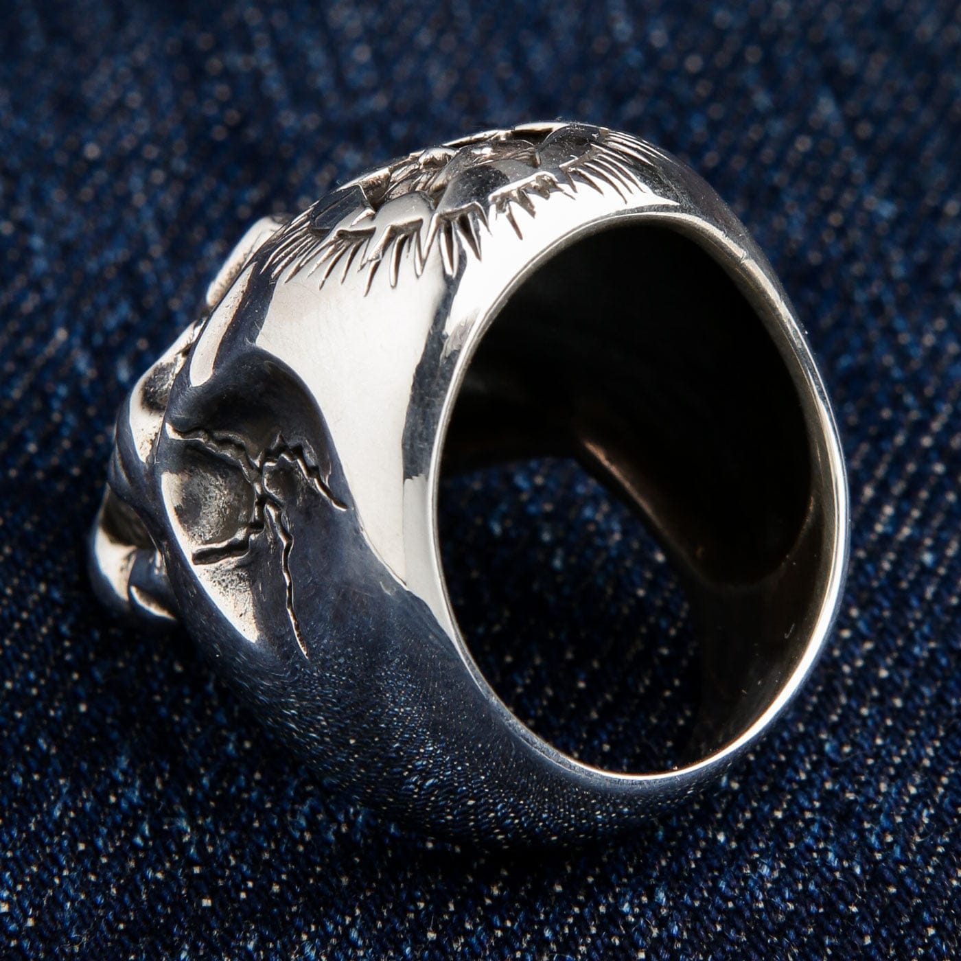 Lasă-ți bijuteriile să vorbească pentru tine — poartă cu îndrăzneală Inelul Heavy Sun God din Argint Sterling cu Craniu.