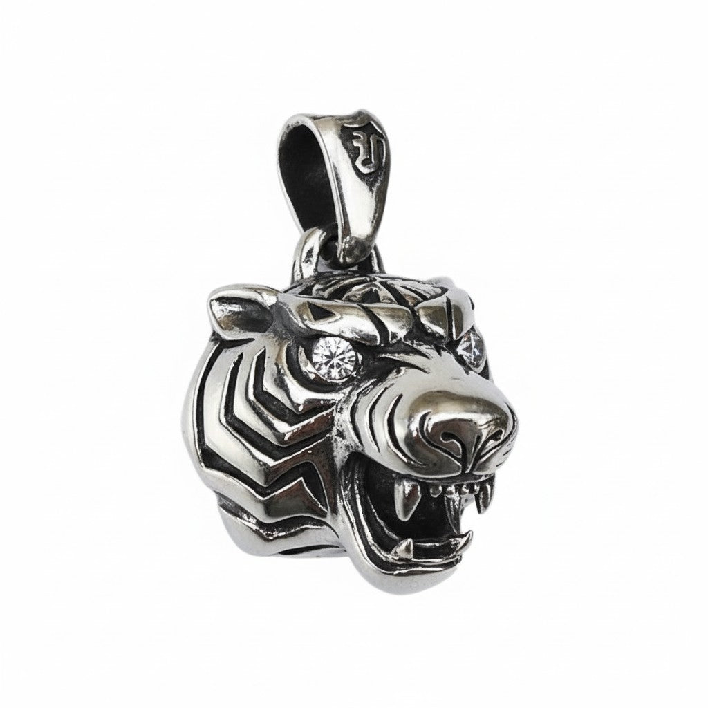 Pandantiv cu cap de tigru din argint sterlin cu ochi din diamant CZ