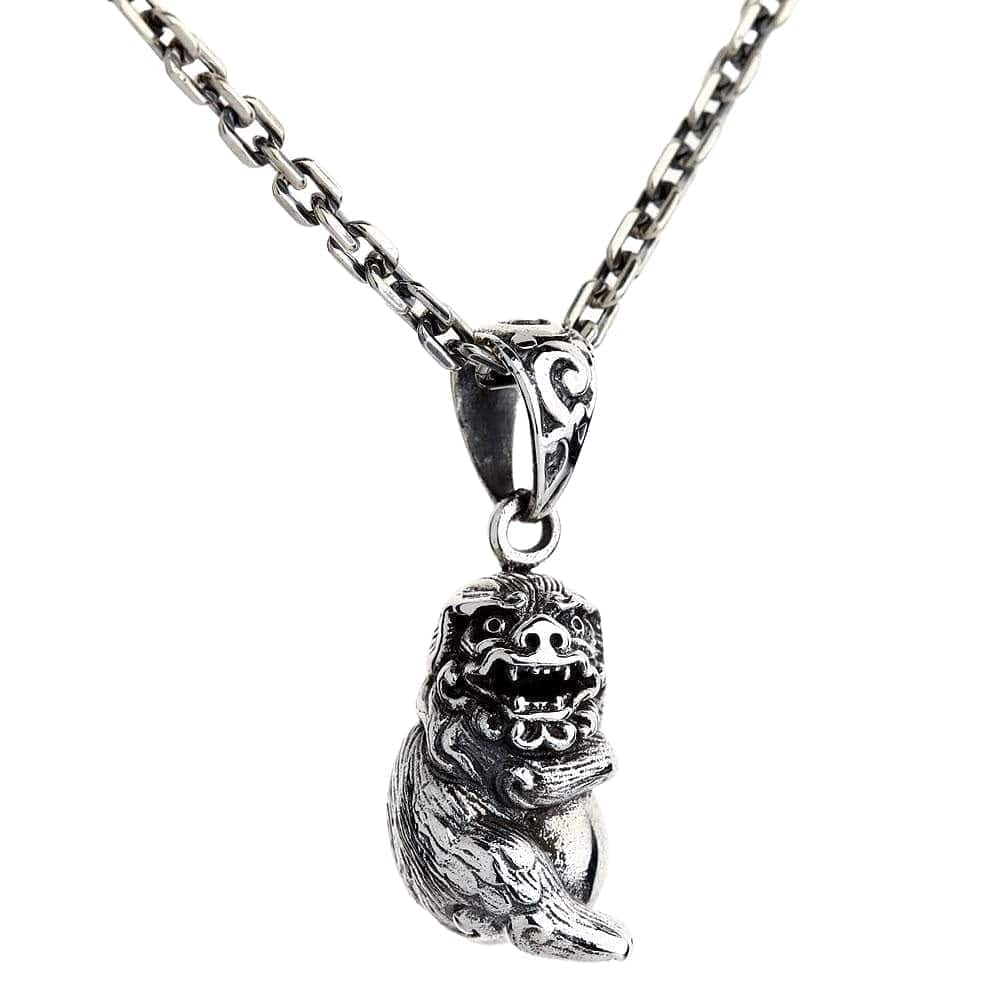 Кулон Комаину — ожерелье в виде японского льва-собаки из стерлингового серебра 925 пробы